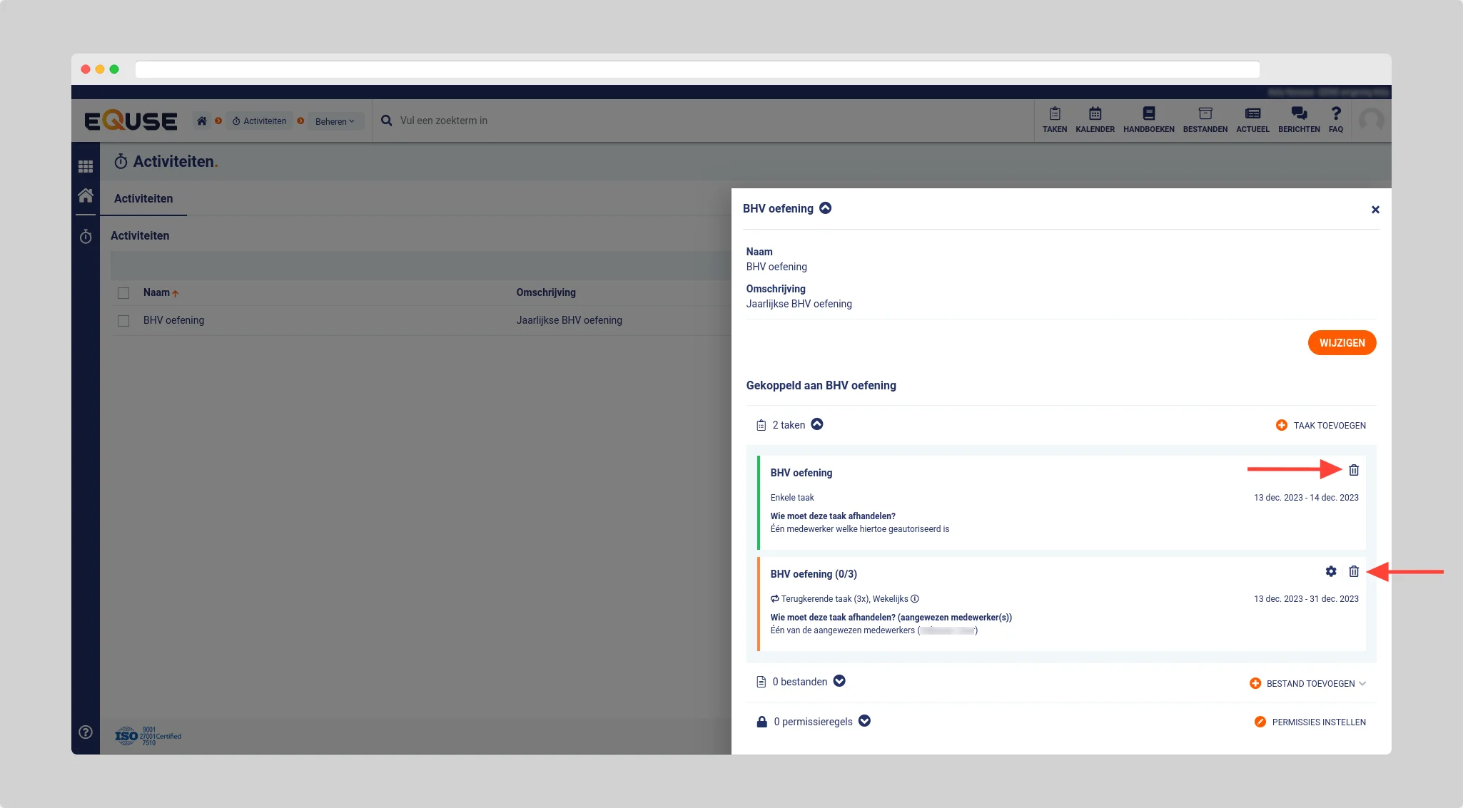 🦉 Tip: U kunt een activiteit ook wijzigen door op het tandwiel icoontje te klikken en vervolgens op wijzigen te klikken.