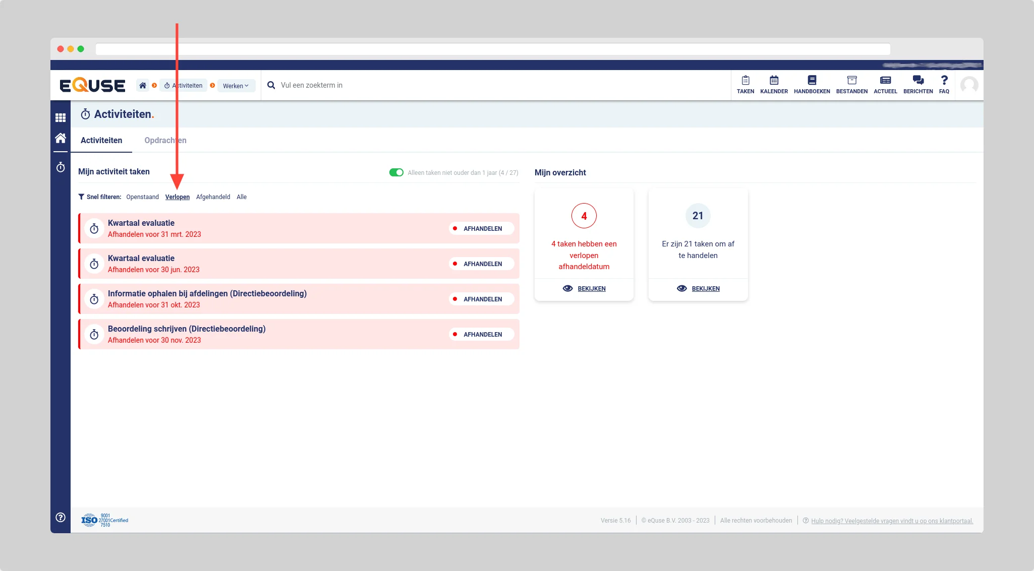 Verlopen activiteiten bekijken