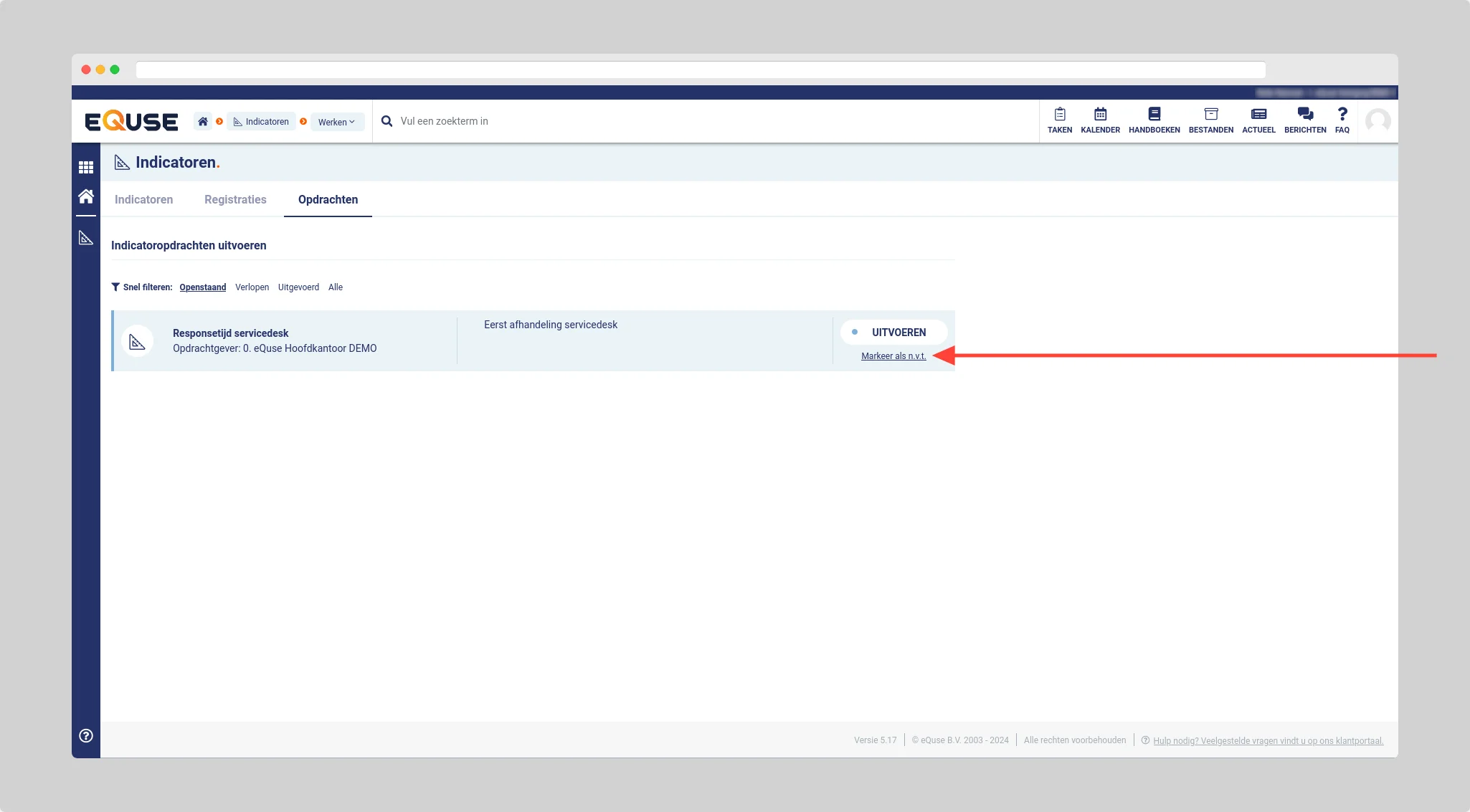 Hoe kan ik een indicatoropdracht als niet van toepassing markeren?