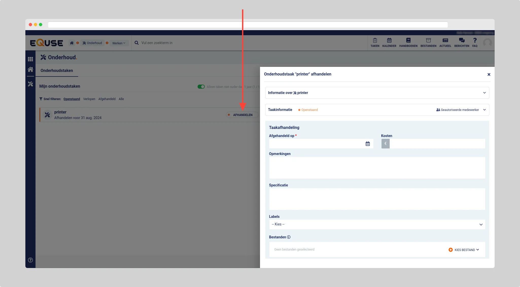 - Vul de datum waarop de taak wordt afgehandeld in bij afgehandeld op.