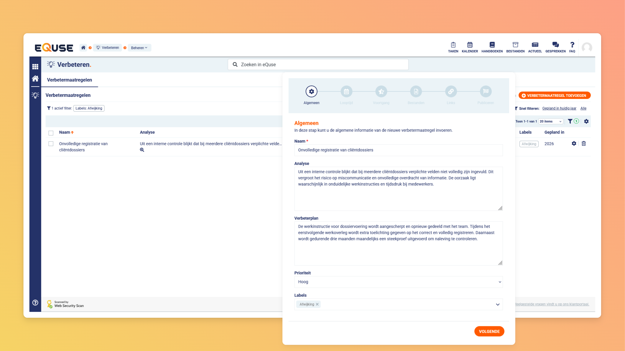 Heeft u vragen over het inrichten van labels binnen uw organisatie? Neem dan gerust contact op met onze helpdesk via support@equse.nl. Wij denken graag met u mee over een structuur die aansluit bij uw processen.