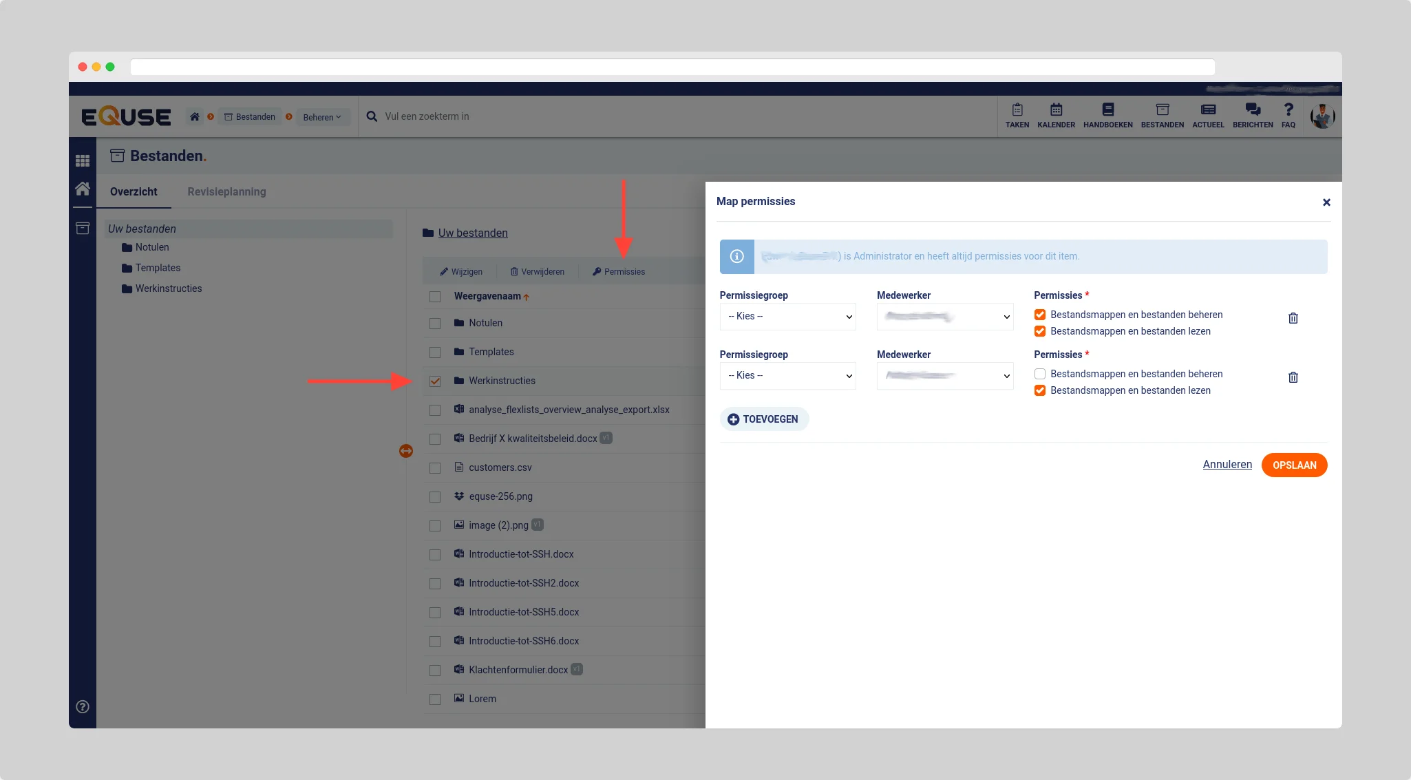 Item specifieke permissies vertegenwoordigen de vierde en meest gedetailleerde vorm van permissies binnen jouw Kwaliteitsmanagement Systeem (KMS). Met deze methode kun je specifieke items, zoals bestandsmappen, activiteiten, onderhoud en indicatoren beveiligen op een manier die afwijkt van de algemeen toegewezen permissies. Hiermee creëer je uitzonderingen op de standaardpermissies, waardoor je nauwkeurige controle hebt over wie toegang heeft tot bepaalde informatie.