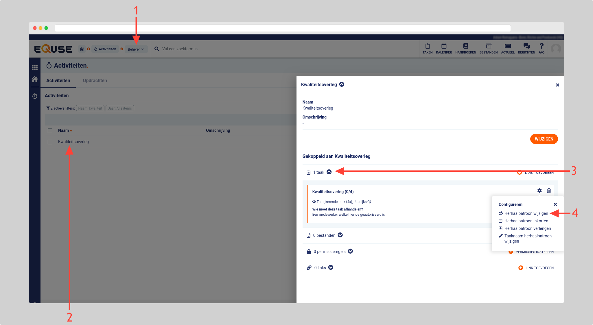 - Klik bij de taak die u wilt wijzigen op het tandwiel icoontje > Herhaalpatroon wijzigen