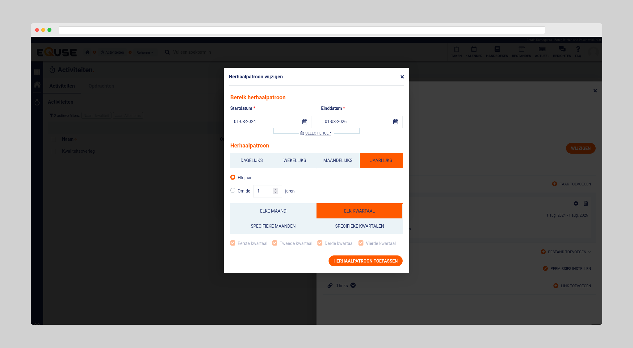 - Controleer de wijzigingen. U kunt het herhaalpatroon eventueel nog aanpassen door op het potlood icoontje te klikken. Sla de wijzigingen vervolgens op door op de knop opslaan te klikken.