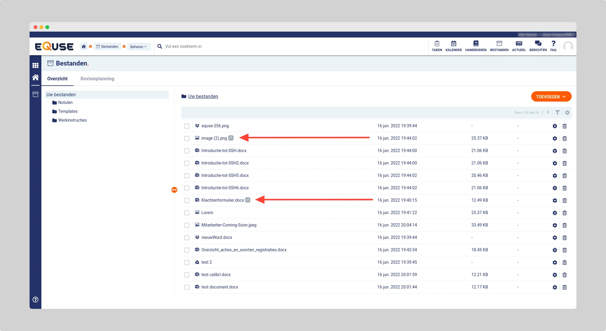 Het versienummer wordt weergegeven in het label achter de bestandsnaam van bestanden met versiebeheer.