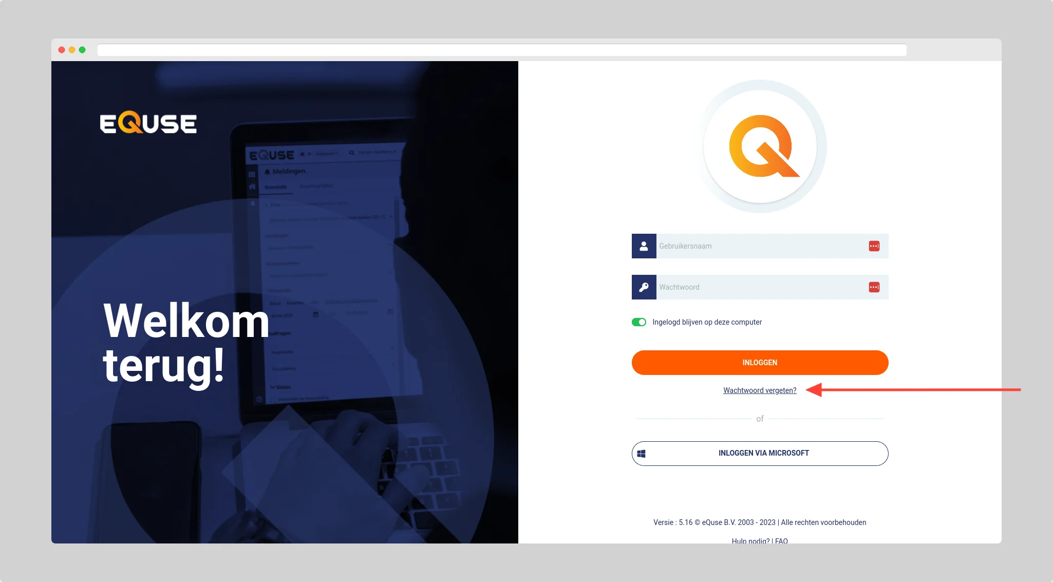 - Ga naar de login pagina op https://start.equse.nl
