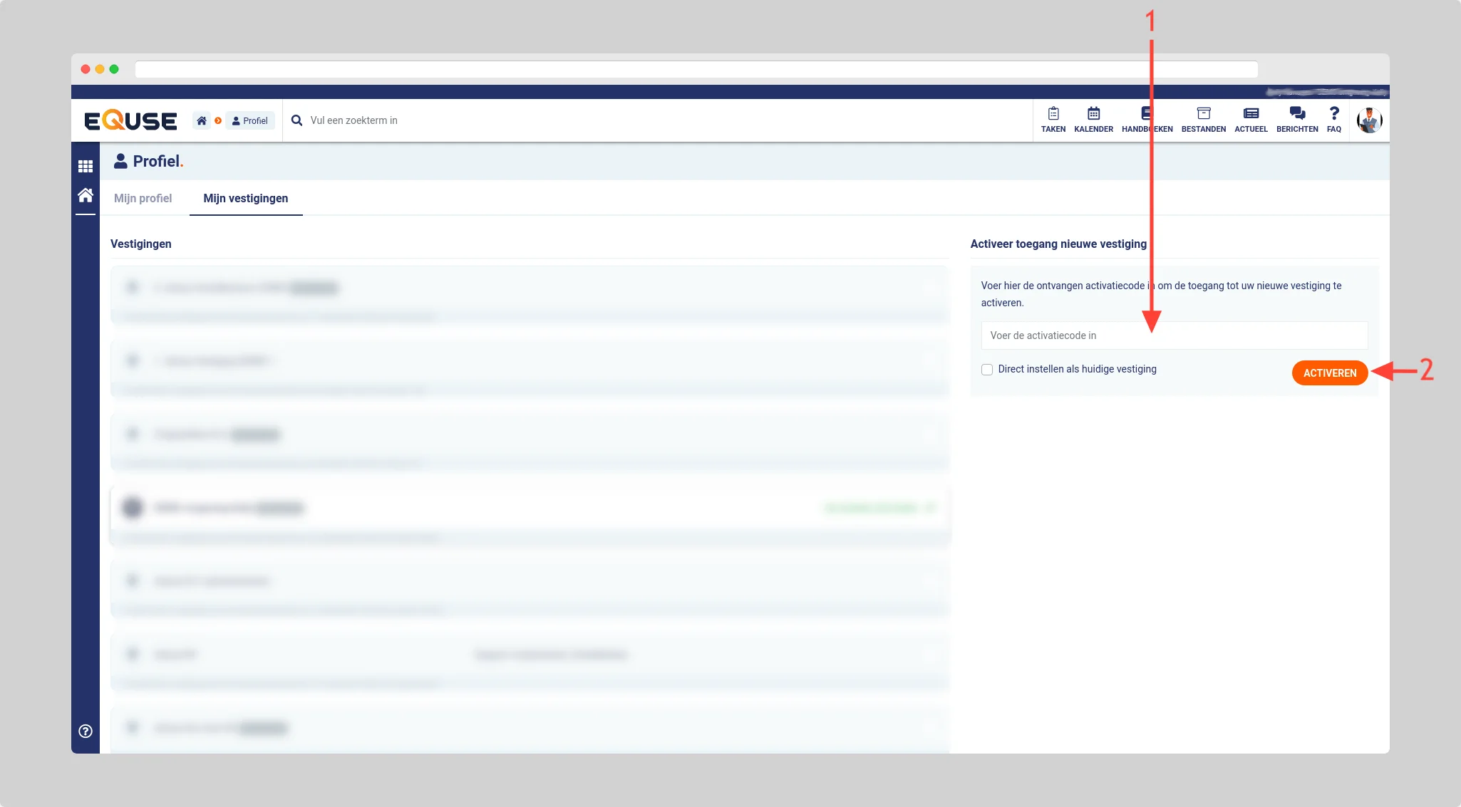 ⚠ Aandachtspunt: De activatiecode dient u alleen te gebruiken bij het toevoegen van een extra vestiging (u heeft dus al een eQuse inlogaccount).