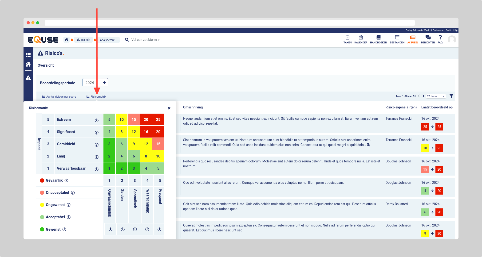 Hoe kan ik de risicomatrix zien?