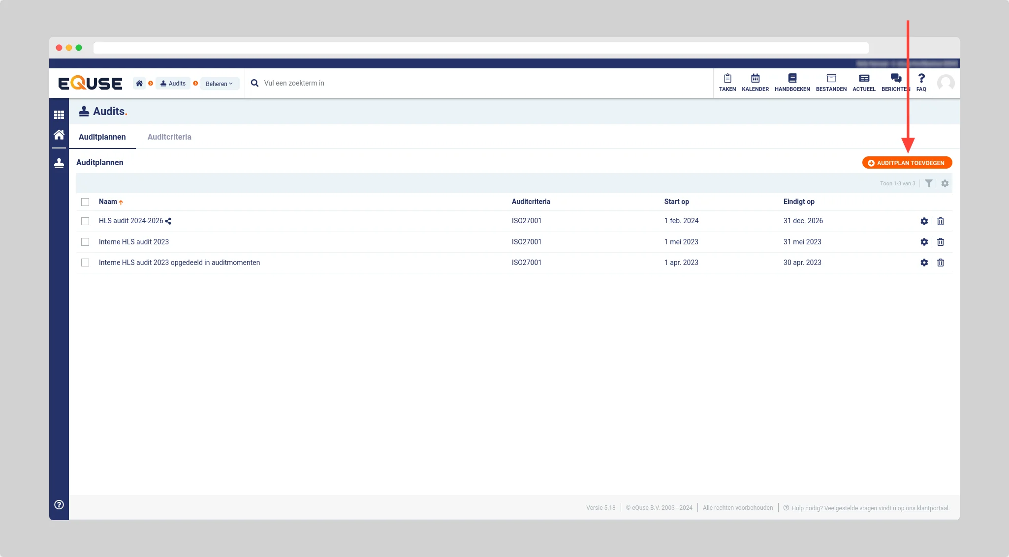 Ga naar Audits > Beheren > Auditplannen en klik op de knop auditplan toevoegen om een nieuw auditplan toe te voegen.