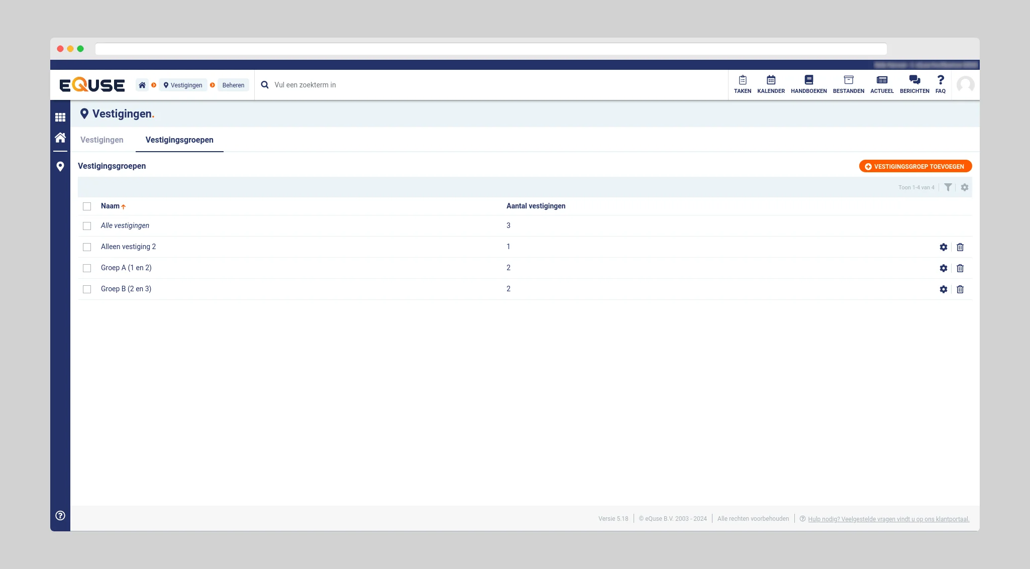 Vestigingsgroepen bieden u de mogelijkheid om uw vestigingen te groeperen. Bij het instellen van de ontvangers (bijvoorbeeld bij een opdracht of actueel bericht) kunt u deze vestigingsgroepen selecteren waardoor alle vestigingen binnen de vestigingsgroep de opdracht zullen ontvangen. Hiermee kunt u op een snelle manier een specifieke groep vestigingen als ontvanger instellen. De vestigingsgroep Alle vestigingen is een standaard groep waaraan alle vestigingen zijn gekoppeld. U kunt deze groep niet zelf wijzigen of verwijderen.