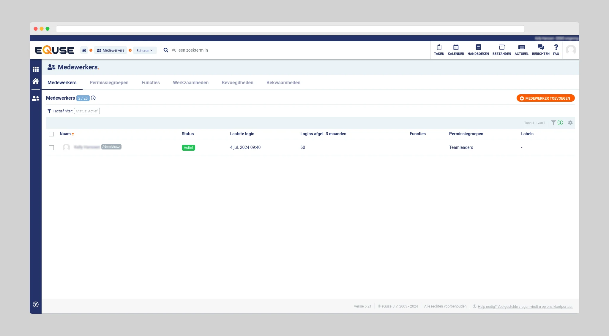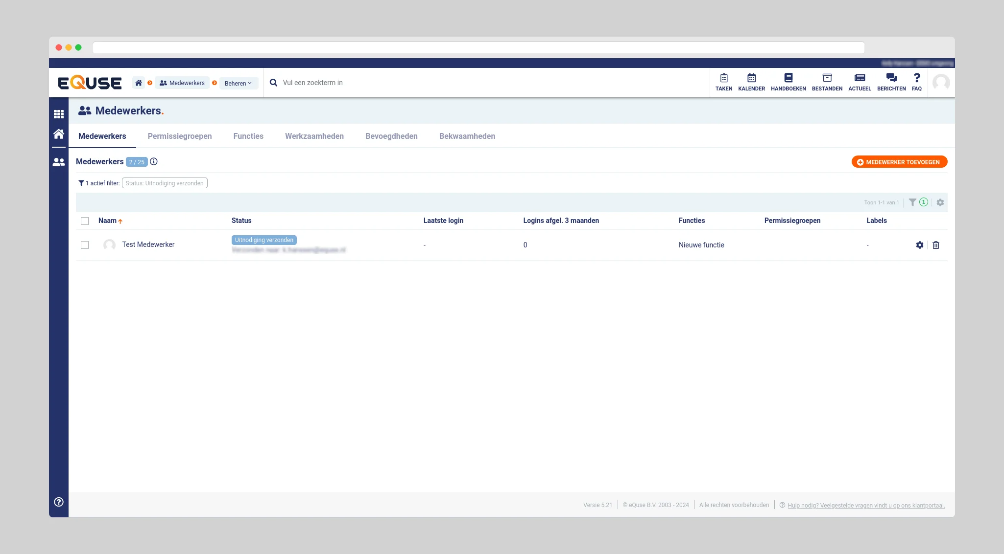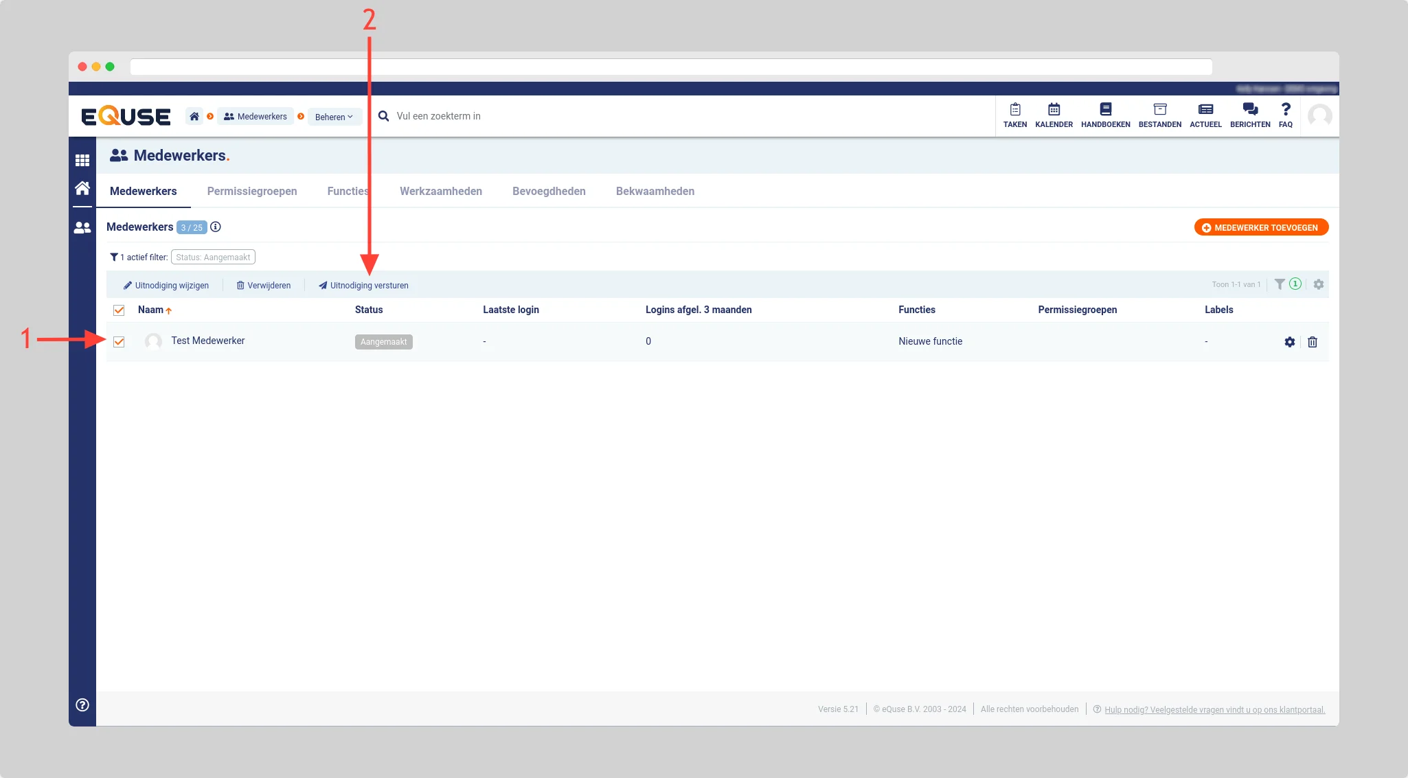 Volg onderstaande stappen om een medewerker met status 'aangemaakt' een uitnodiging te sturen voor toegang tot eQuse.