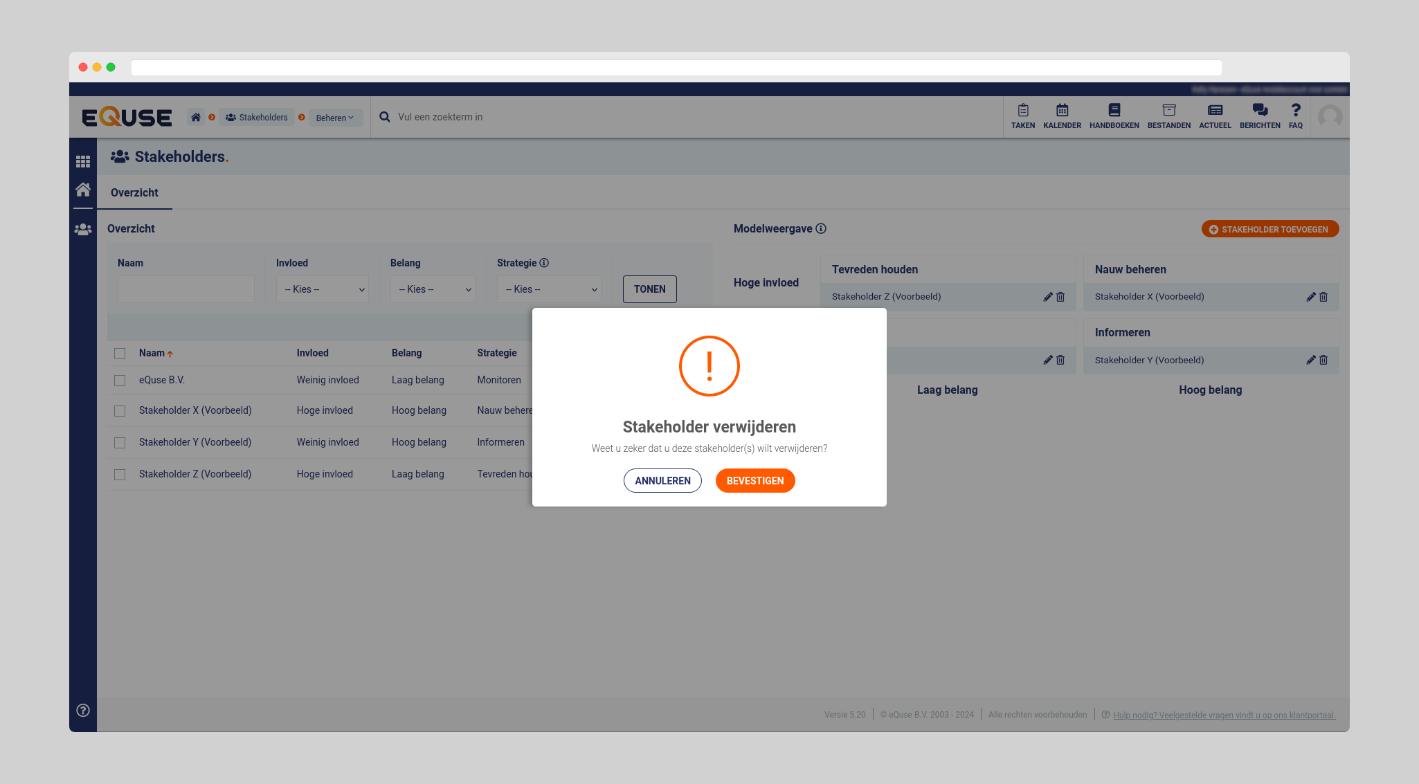 Volg onderstaande stappen om een stakeholder te verwijderen.