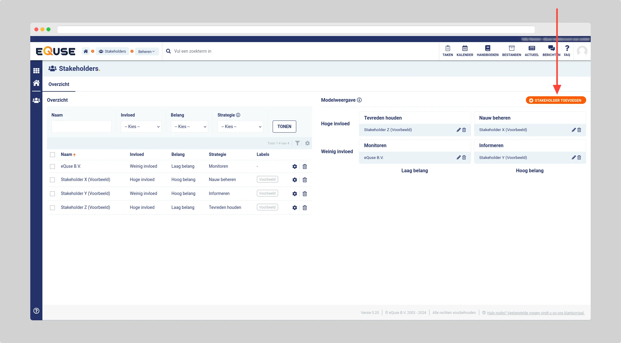 Volg de volgende stappen om een stakeholder toe te voegen.
