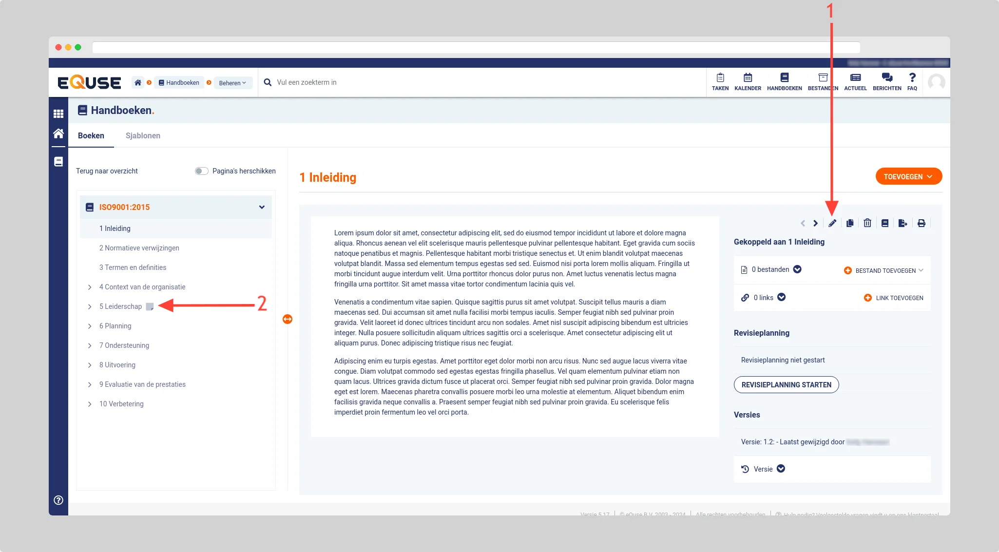 Klik in het handboek, bij de pagina waarvoor u aanvullingen mogelijk wilt maken op het potlood icoon om de pagina te bewerken (1).
