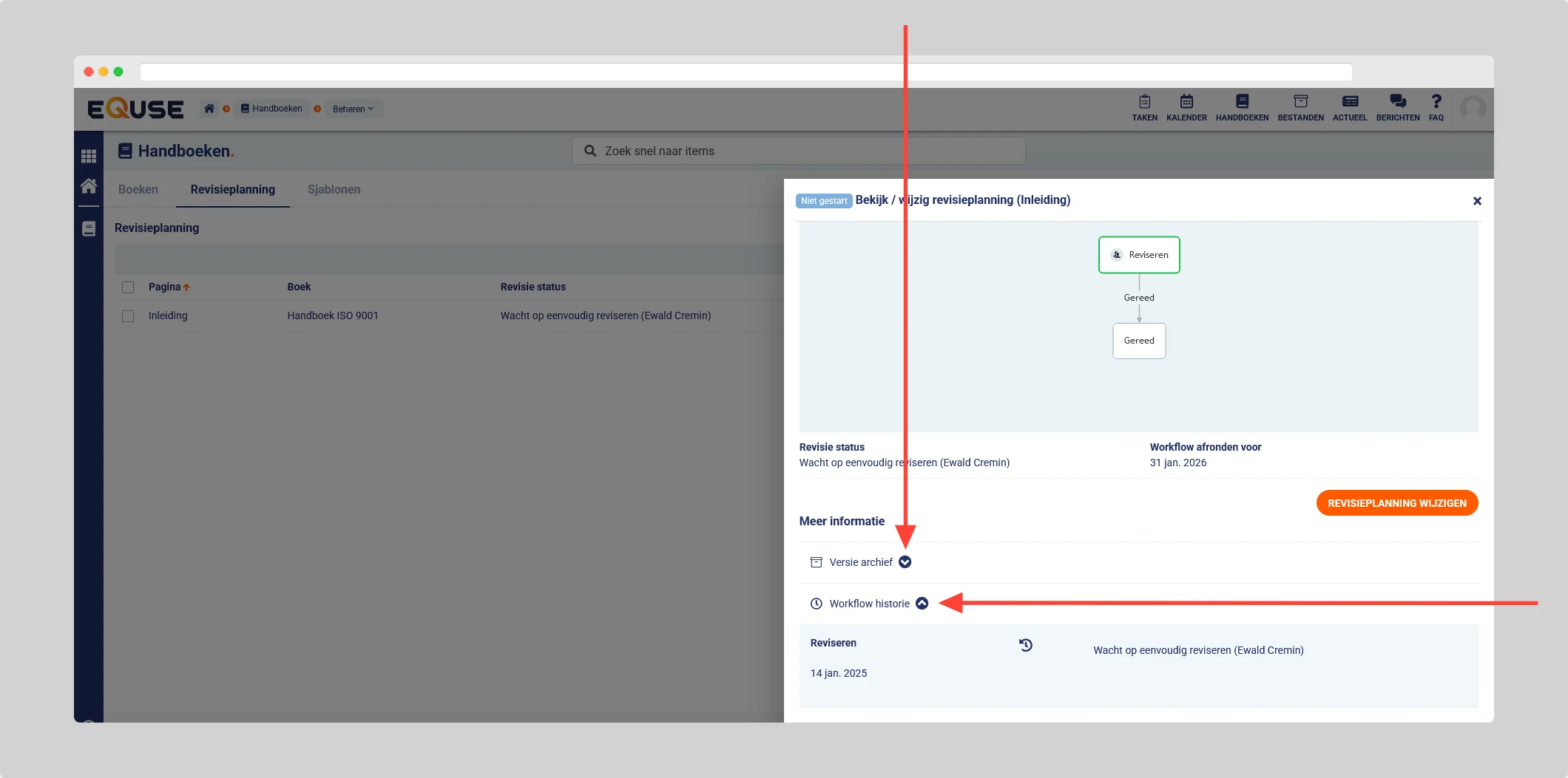 - Ga naar Handboeken > Beheren > Revisieplanning.