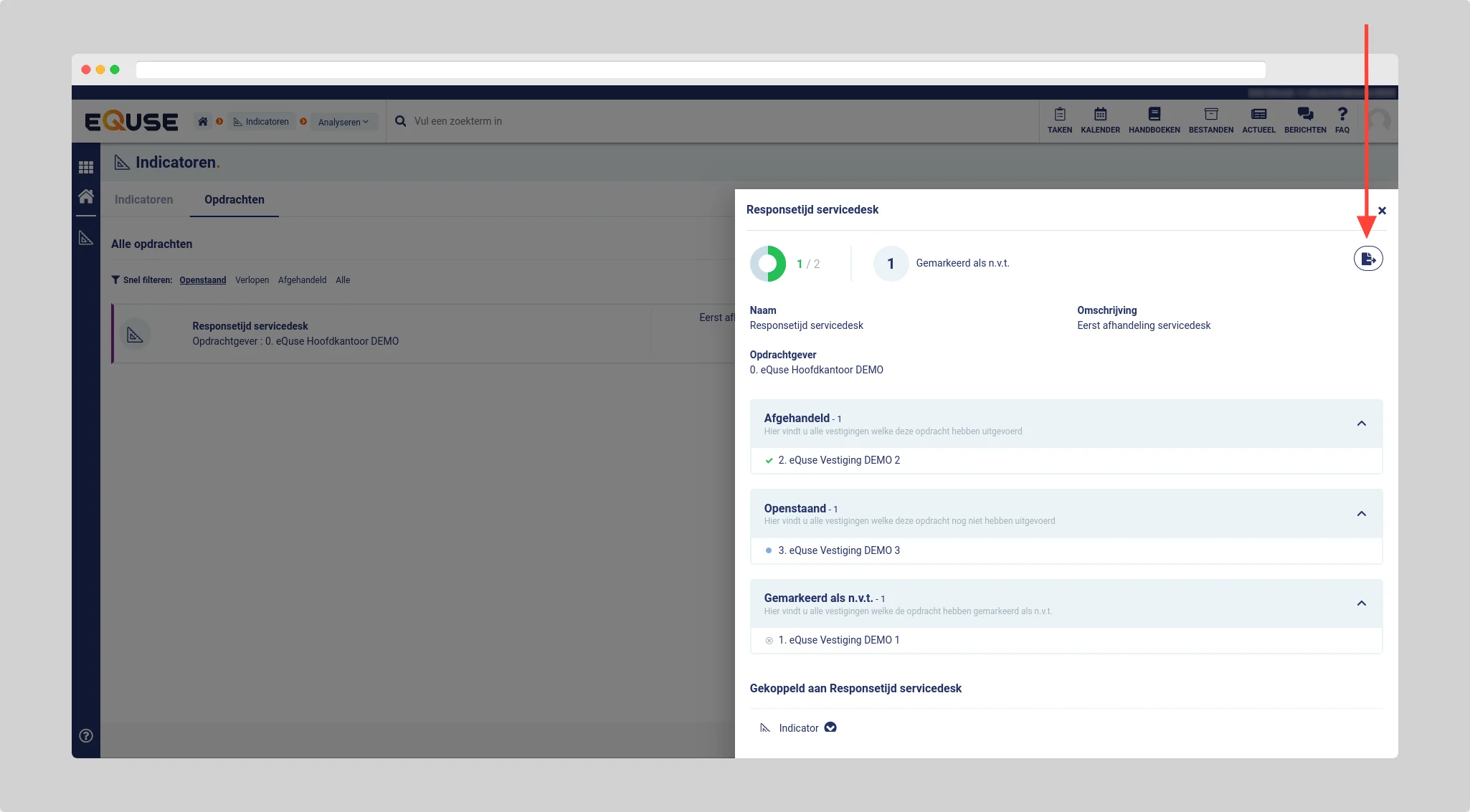 Ga naar Indicatoren > Analyseren > Opdrachten en klik op de indicatoropdracht waarvoor u de taakafhandelingen wilt exporteren.