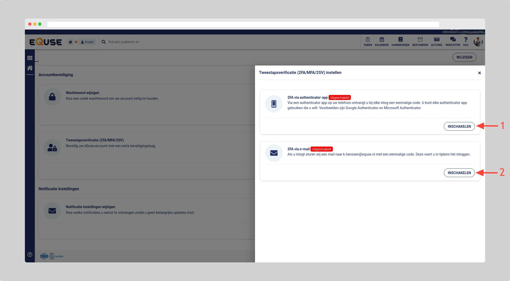 - Via een authenticator app: Bij activeren van deze optie kunt u de QR-code scannen om deze methode te activeren. Bij inloggen genereert u de code in uw authenticator app en vult u deze in om in te loggen.