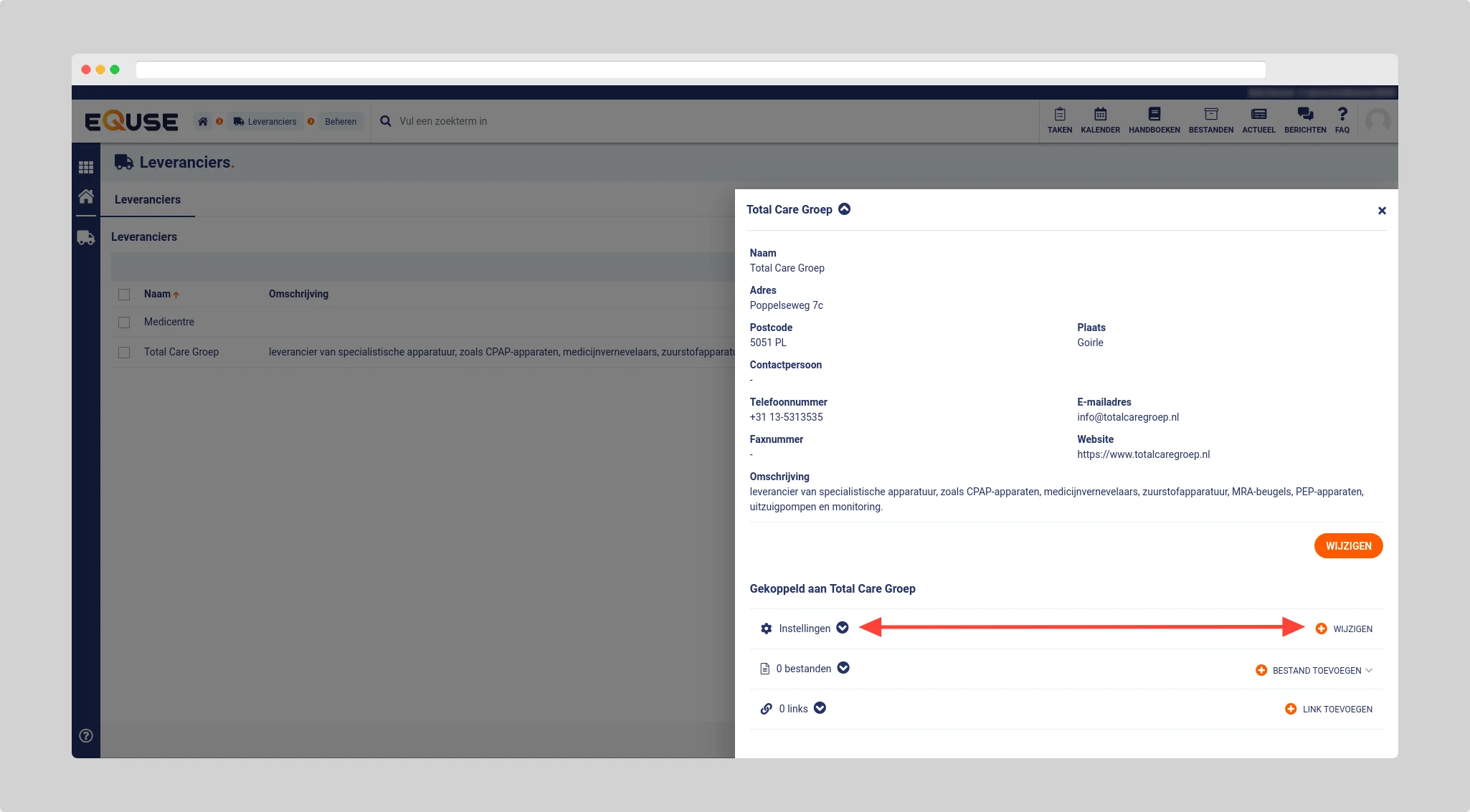 Indien u een bestaande leverancier voor uw vestigingen alsnog beschikbaar wilt maken (of de instellingen hiervoor wilt wijzigen) dan kunt u dat doen door de betreffende leverancier aan te klikken.