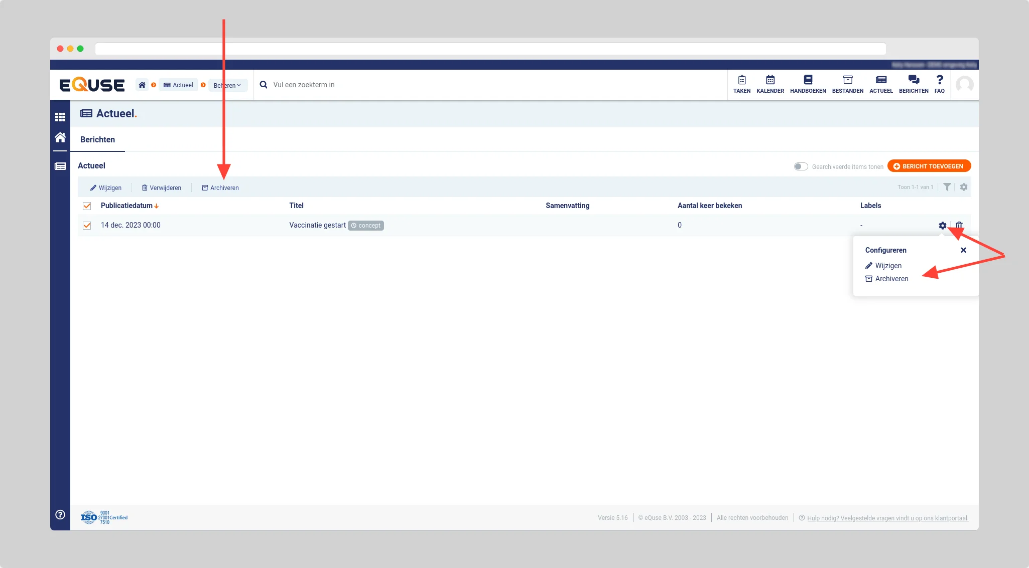 Berichten welke in het archief staan worden niet meer getoond in de werkomgeving en widget op het dashboard.