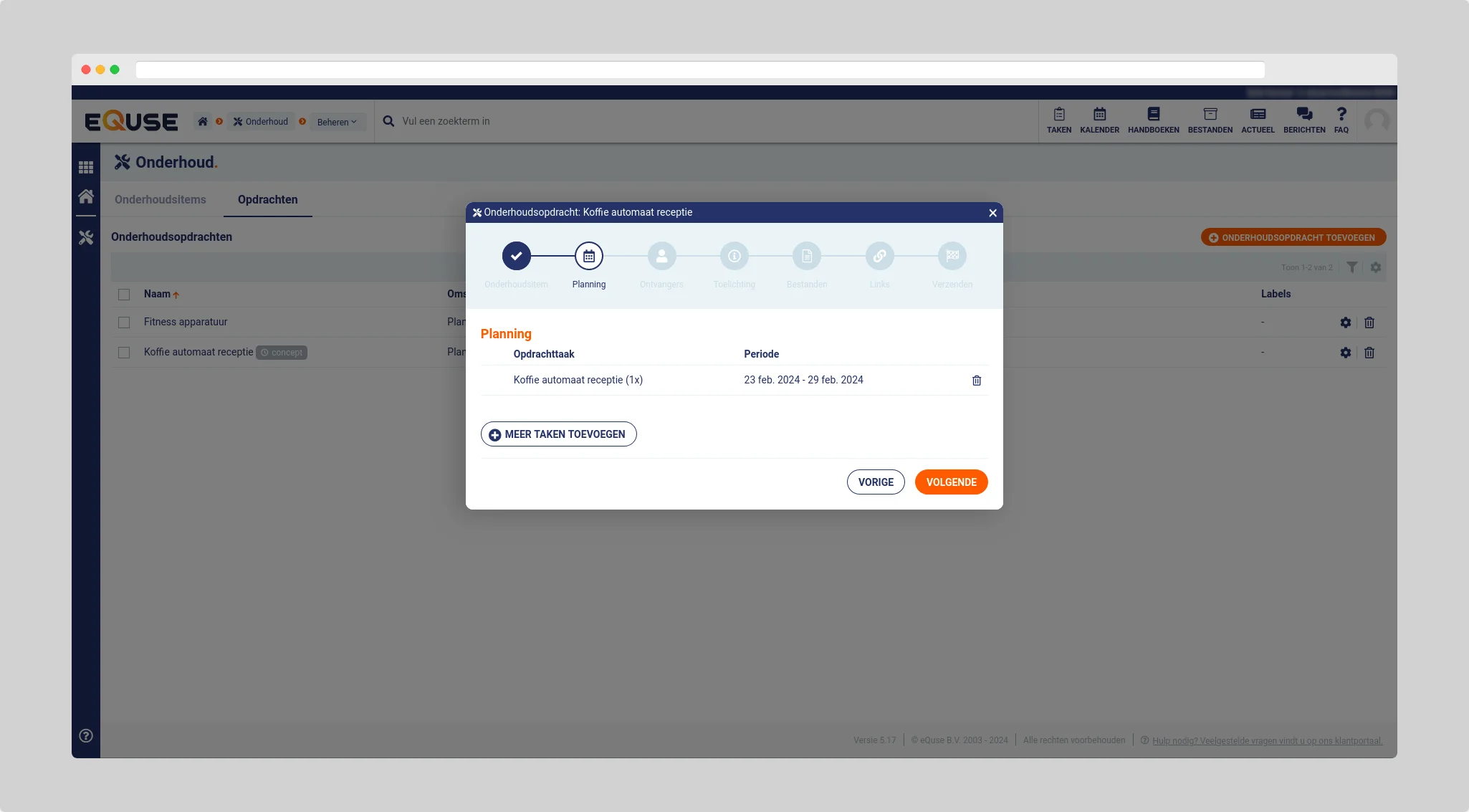 Klik na het instellen van de ontvangers van de opdracht achtereenvolgens op de knop volgende om een toelichting in te vullen (wordt getoond bij het uitvoeren van de opdracht door de vestiging) en bestanden en links te koppelen die in de vestiging worden weergegeven bij het onderhoudsitem dat bij het uitvoeren van de opdracht ontstaat (mits deze voor de vestiging zijn beschikbaar gemaakt).