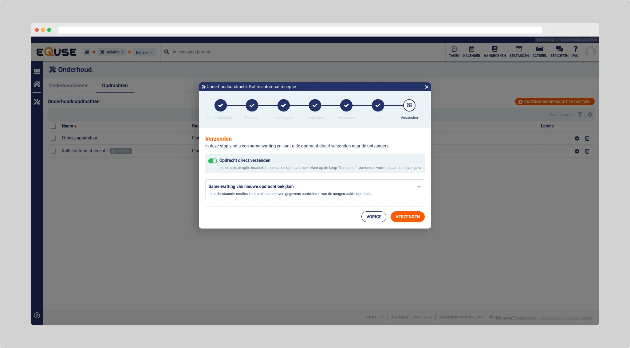 In de laatste stap verzenden heeft u de mogelijkheid om de opdracht direct te verzenden naar de ontvangers door op de knop verzenden te klikken.