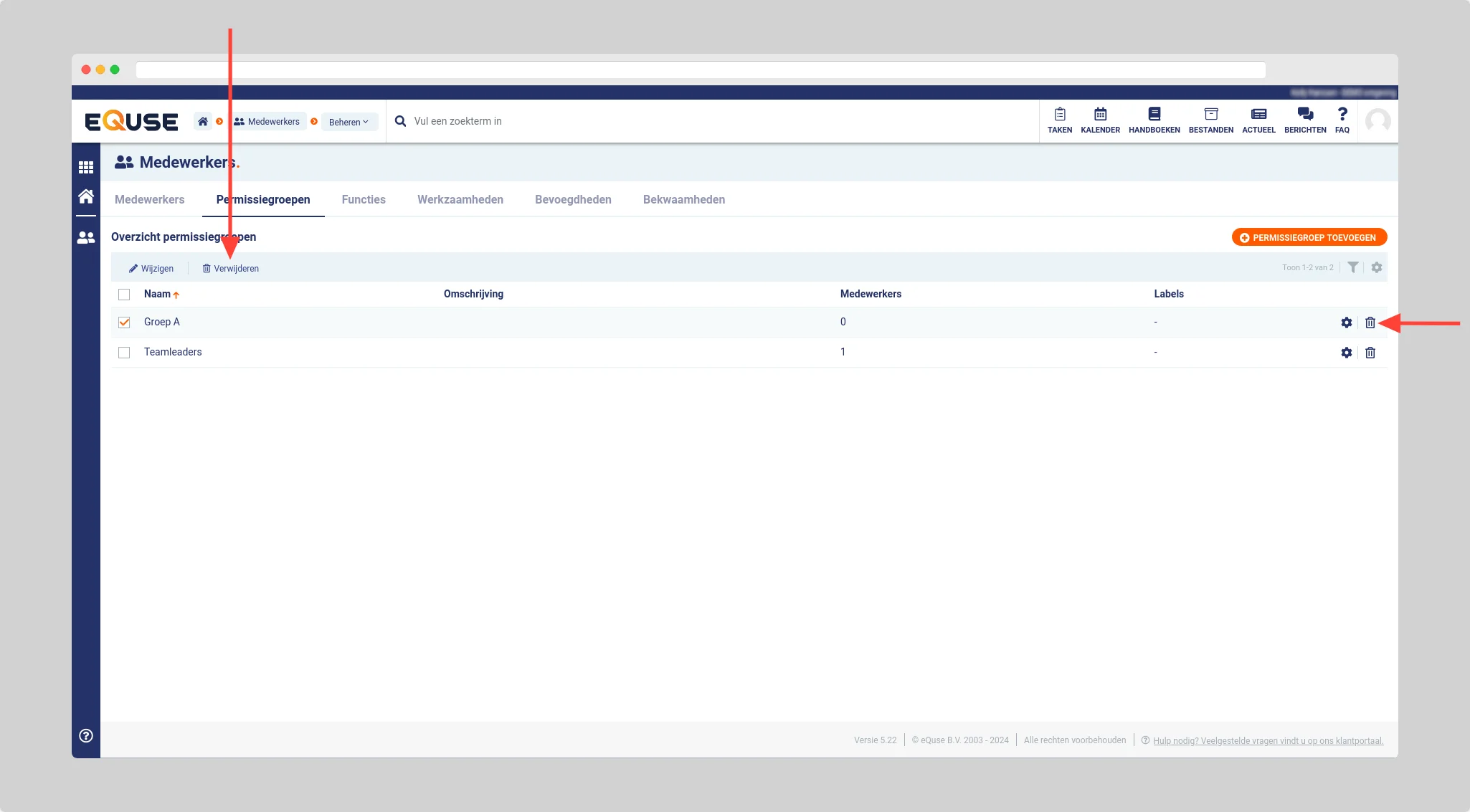 🦉 Tip: U kunt de permissiegroep ook verwijderen door op het prullenbak icoontje te klikken.