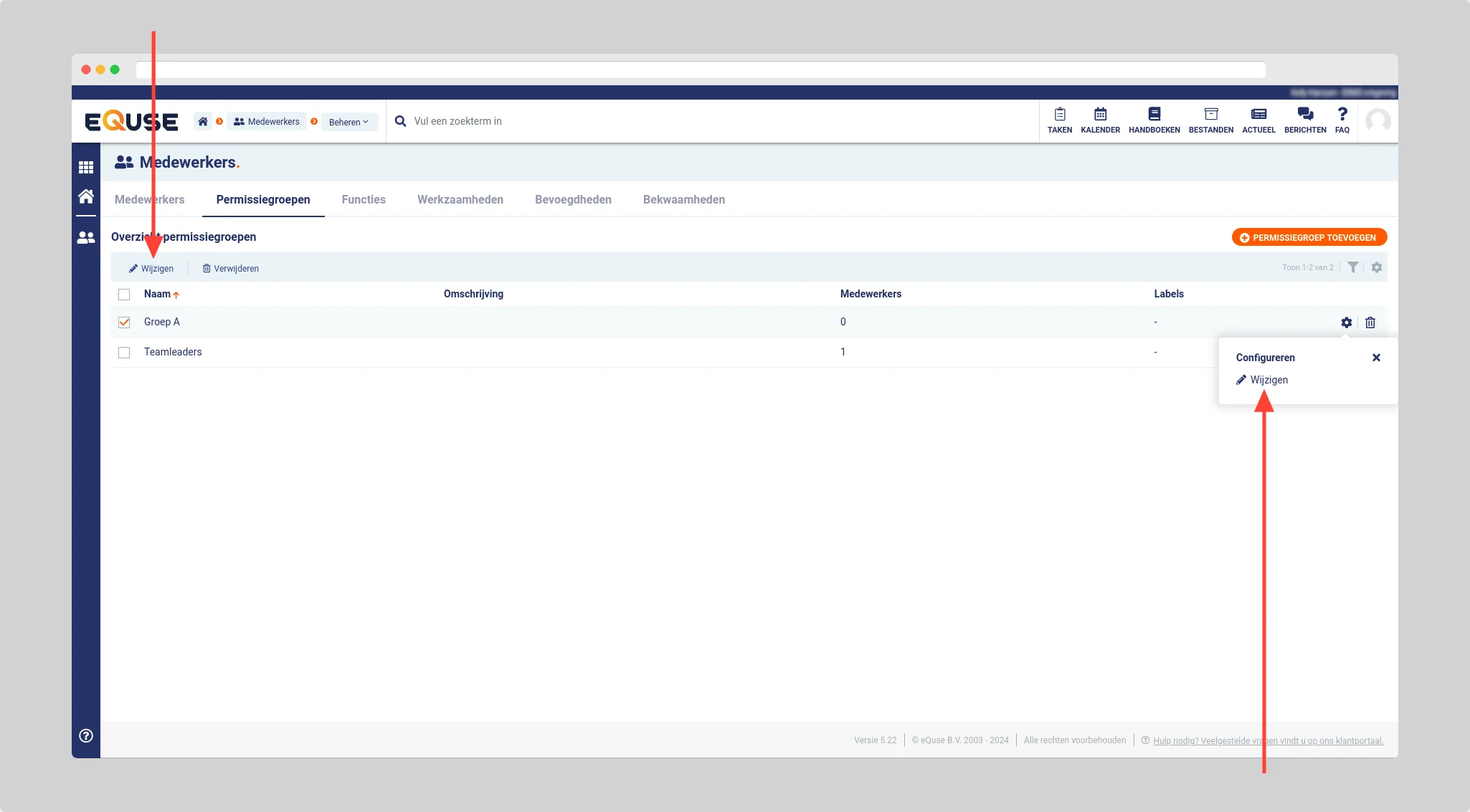 🦉 Tip: U kunt de permissiegroep ook wijzigen door op het tandwiel icoontje te klikken en daarna op wijzigen.