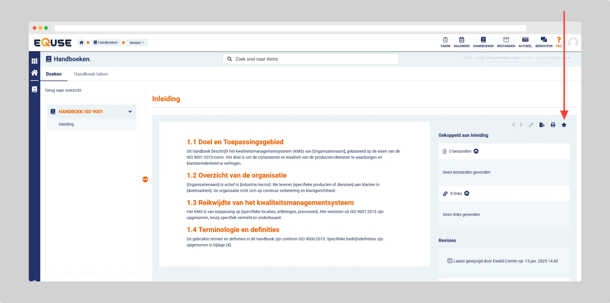 Het markeren van handboekpagina's als favoriet is handig omdat u snel toegang heeft tot de pagina's die voor u het belangrijkst zijn. Deze gemarkeerde pagina's worden weergegeven op uw dashboard, in de favorieten tegel, waardoor u ze gemakkelijk kunt terugvinden zonder door alle handboeken te hoeven navigeren.