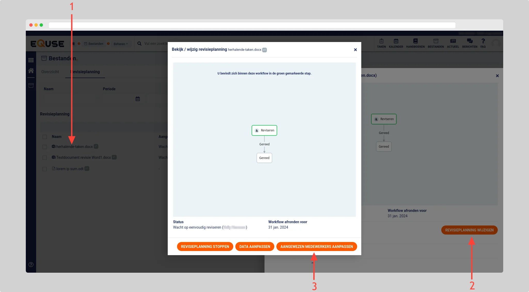 - Klik in het zijpaneel op de knop revisieplanning wijzigen (2).