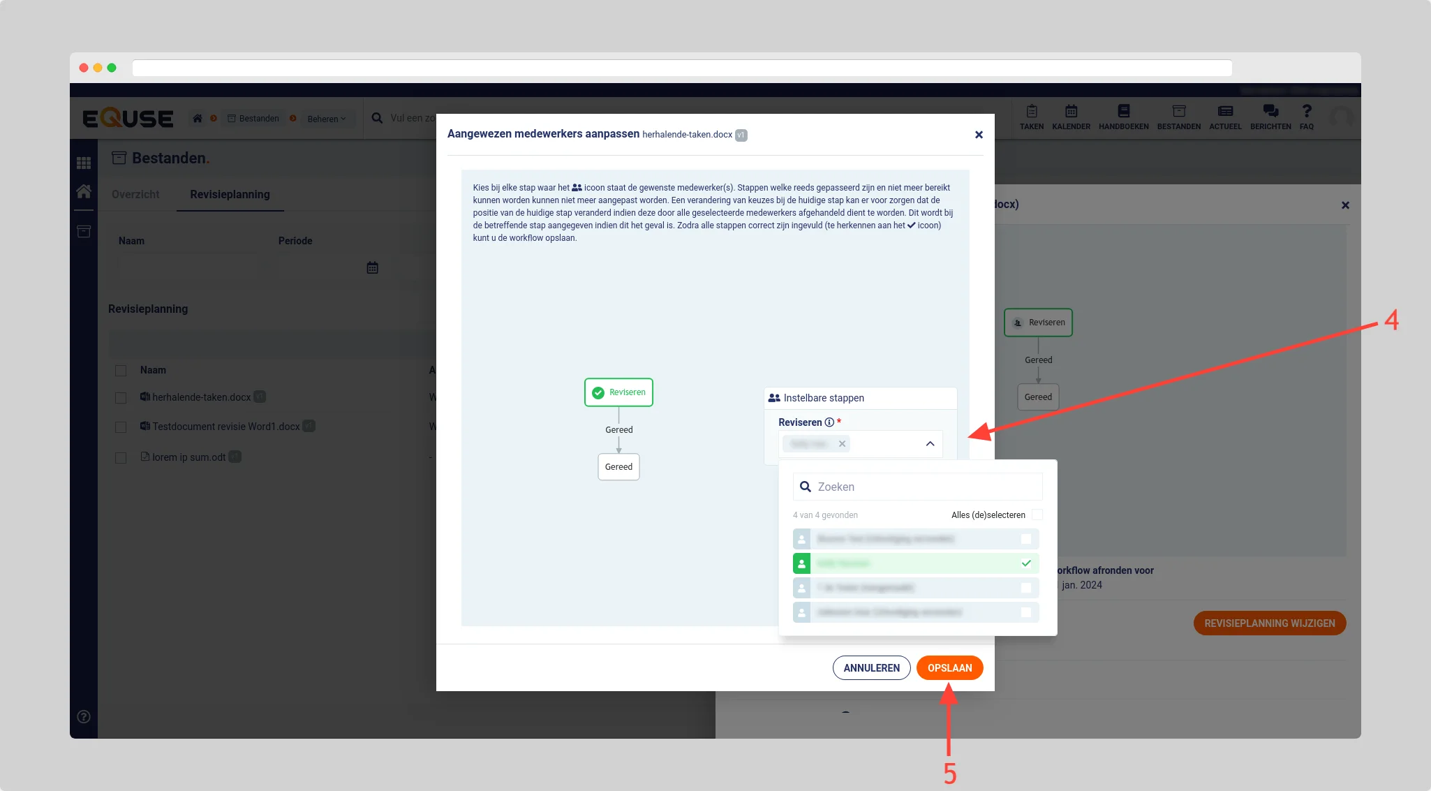 - Selecteer bij de instelbare stappen de gewenste medewerkers (4).