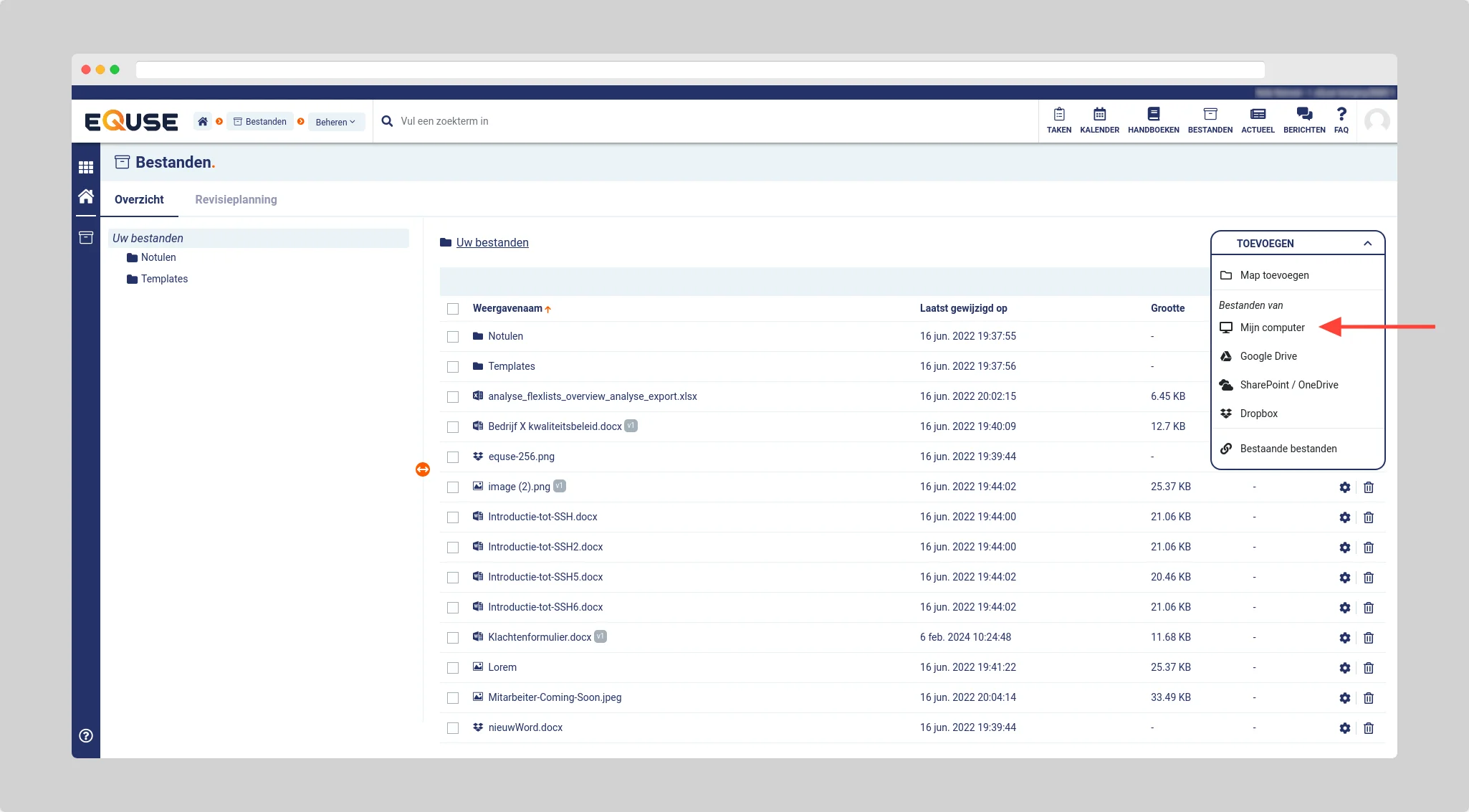 ⚠ Aandachtspunt: Bepaalde bestandstypes zijn niet toegestaan en kunt u niet in eQuse uploaden.