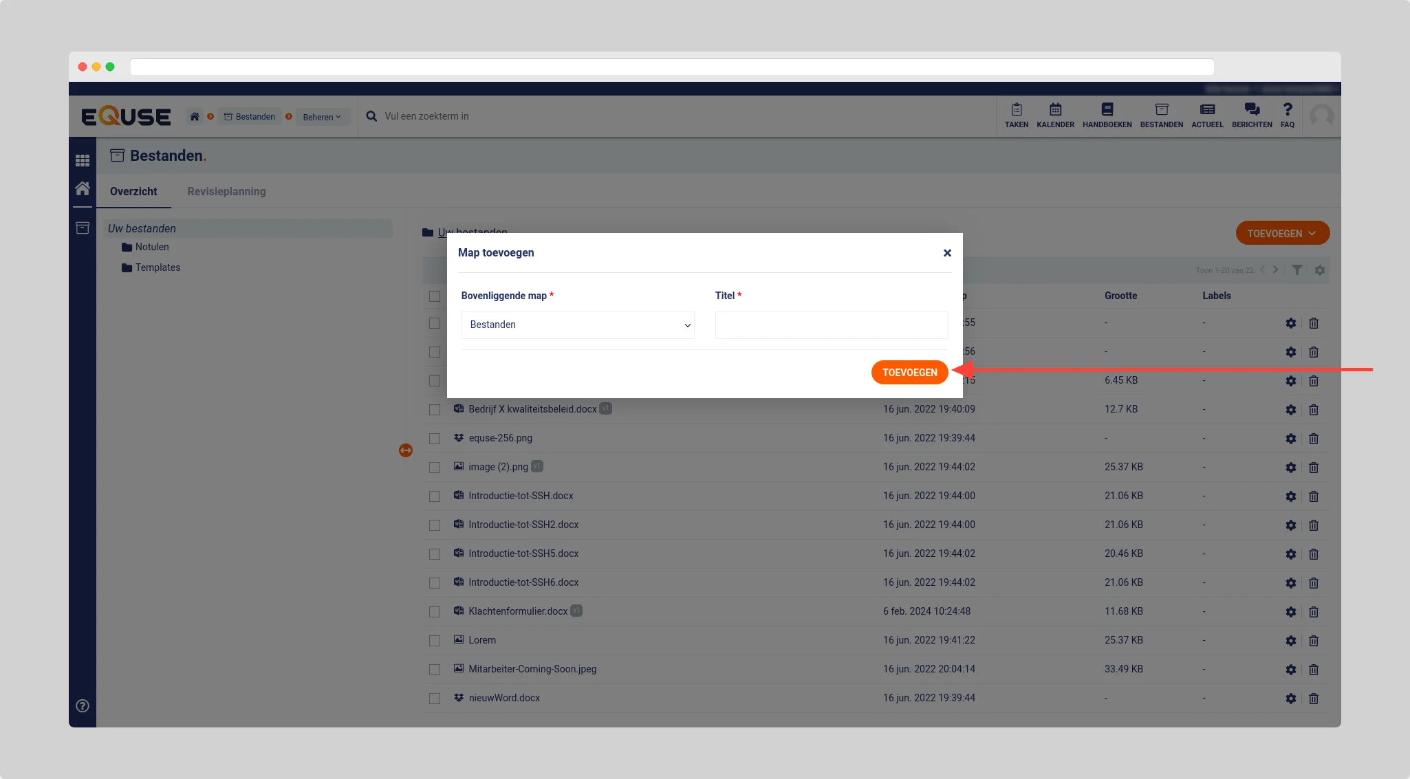 Ga hiervoor naar de module Bestanden > Beheren > Overzicht en klik op de knop toevoegen.