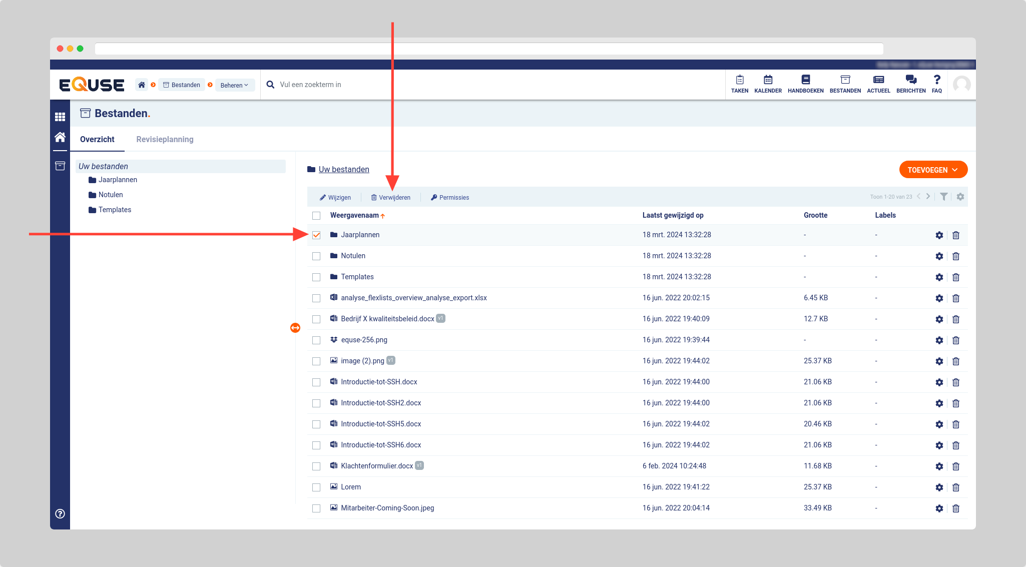 2. Selecteer de map die u wilt verwijderen door het selectievakje aan te klikken en op verwijderen te klikken