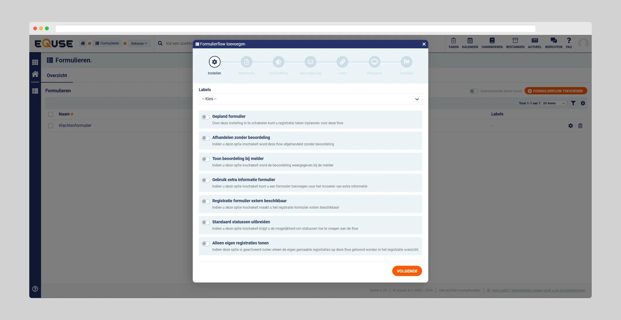 Het samenstellen van formulierflows is een belangrijke taak voor beheerders in eQuse. Binnen de werkomgeving Beheren van de verschillende formulieren modules biedt eQuse uitgebreide functionaliteiten om werkprocessen te stroomlijnen en gegevensverzameling te optimaliseren.