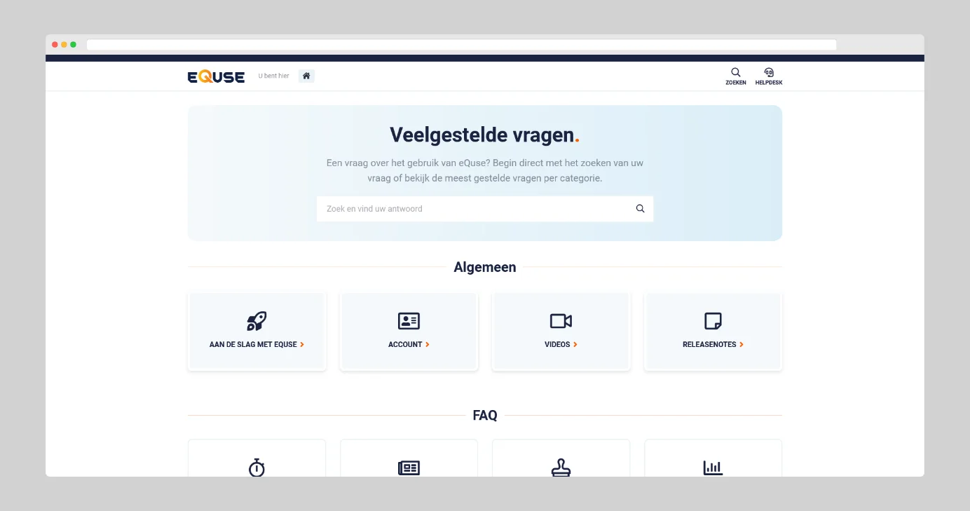 Voor ondersteuning bij het gebruik van eQuse kunt u terecht bij de Veelgestelde vragen (FAQ) en de support desk. Hieronder leest u hoe u deze hulpmiddelen kunt benutten.