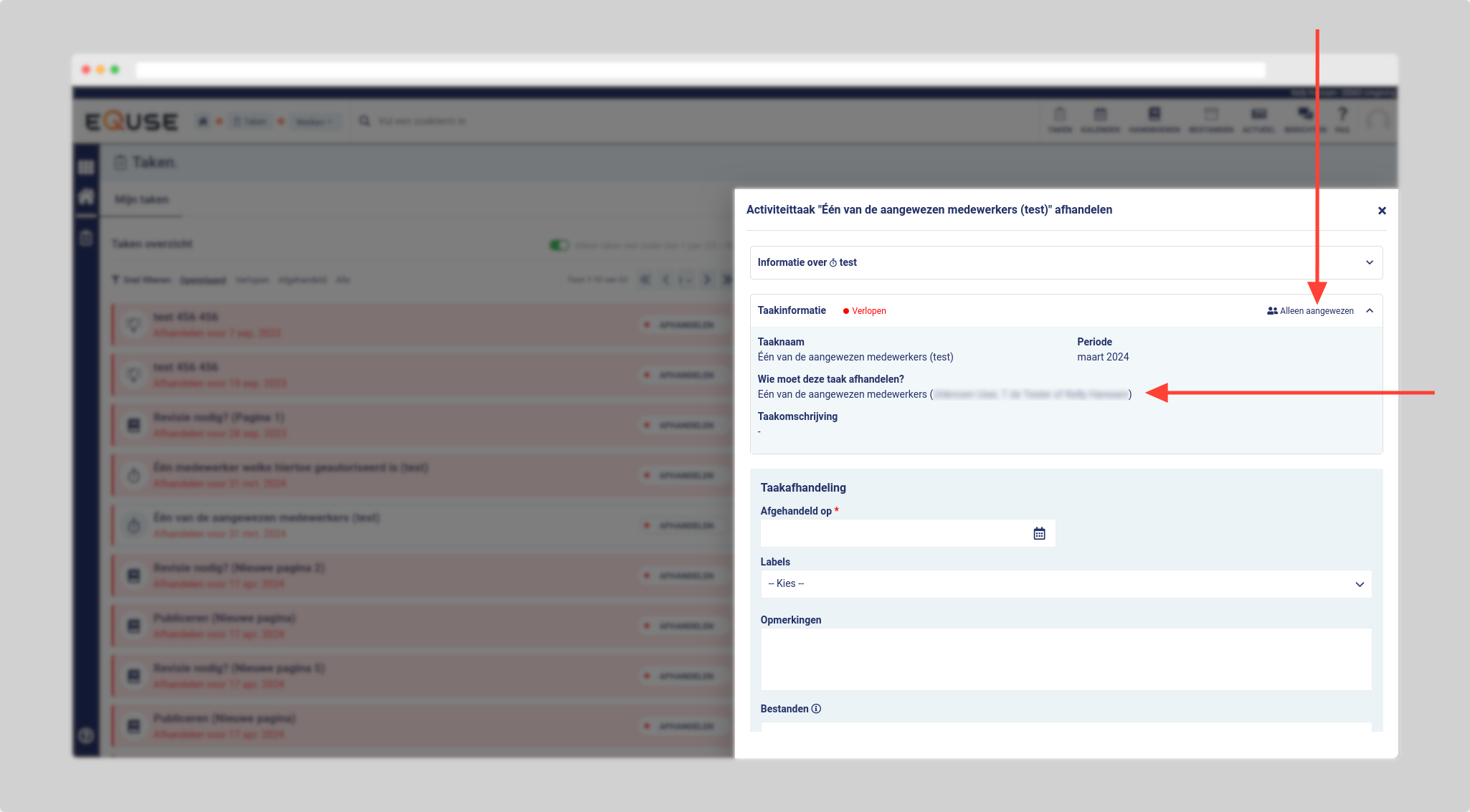 Hoe kan ik zien wie een taak moet afhandelen?