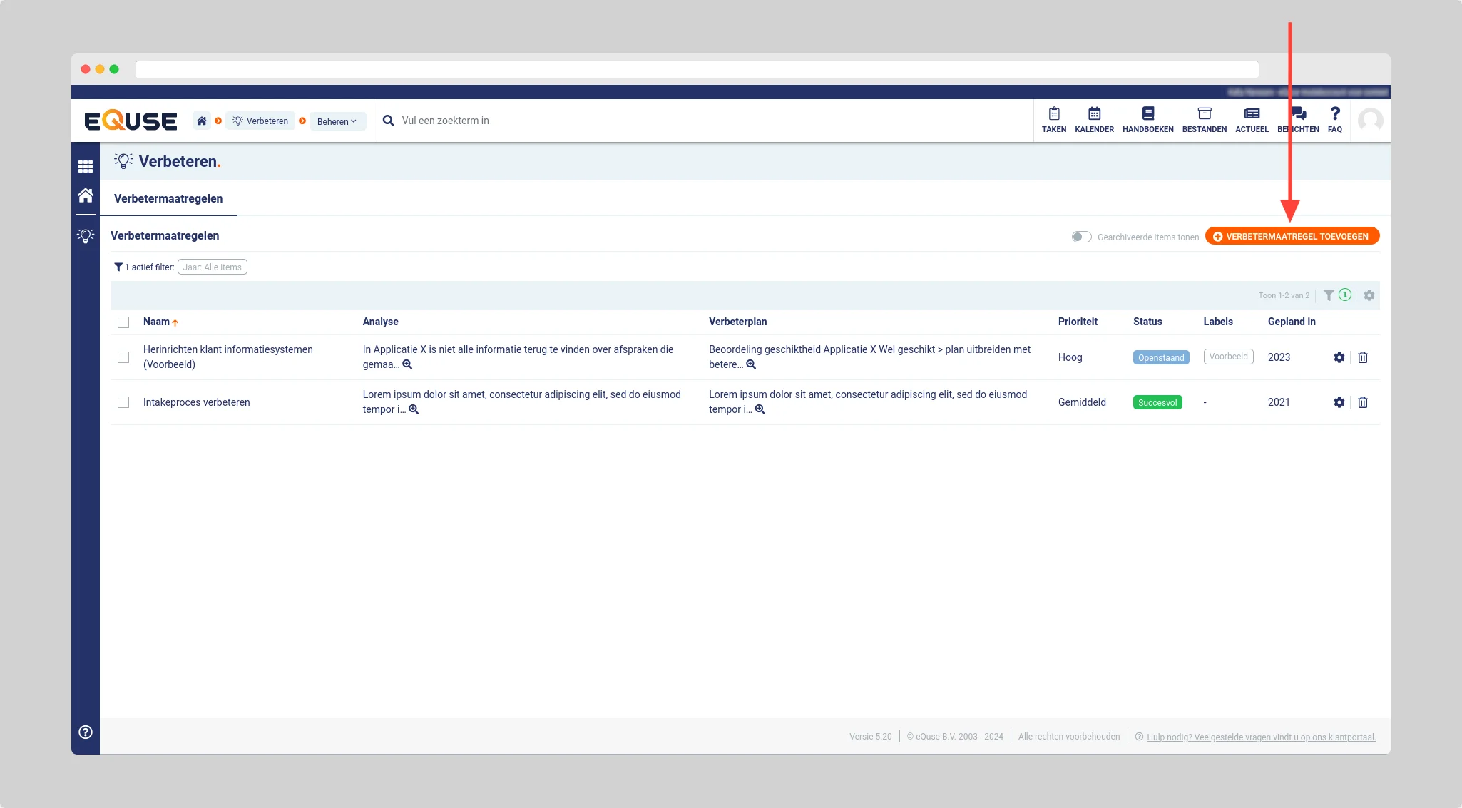 Volg onderstaande stappen om een verbetermaatregel toe te voegen.