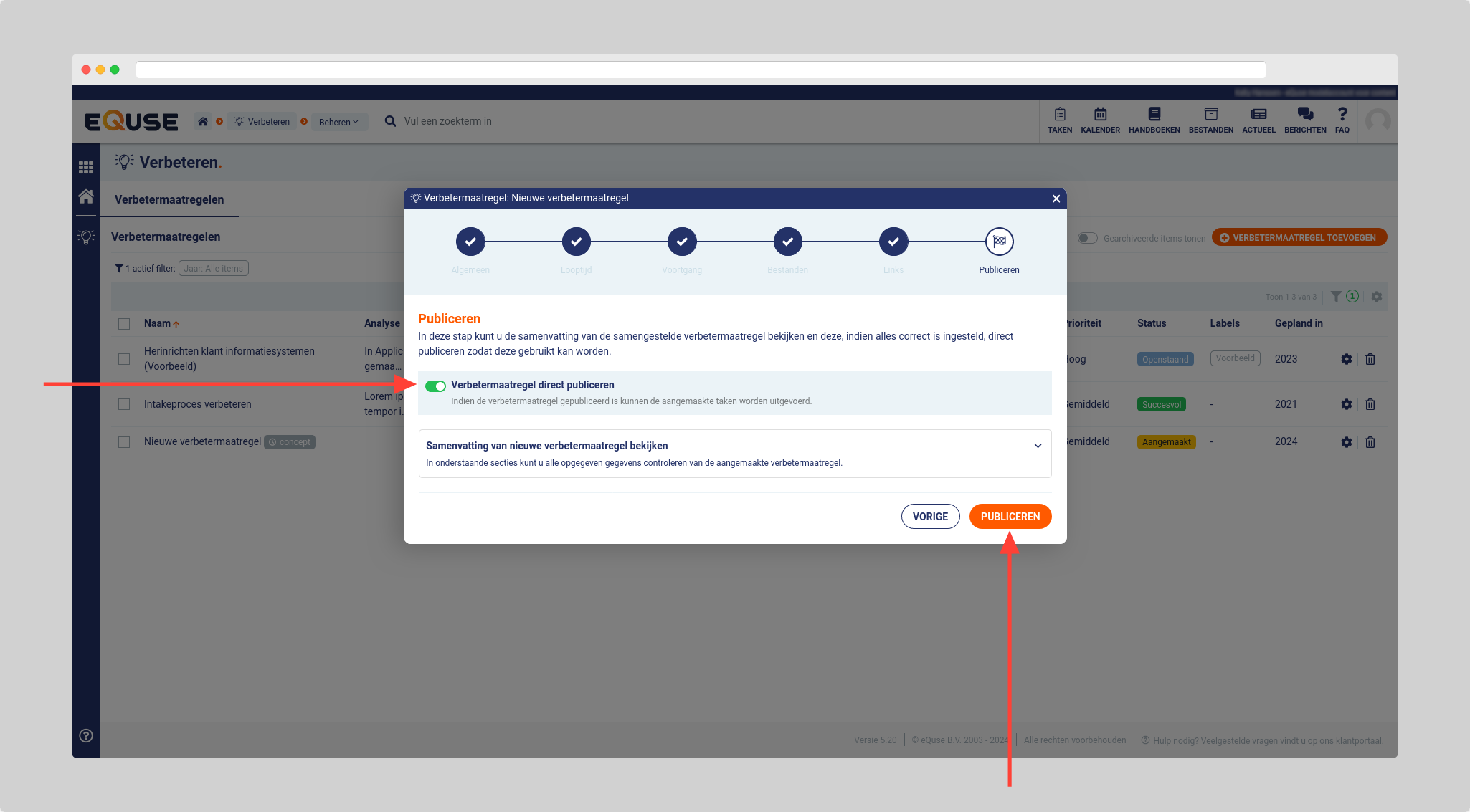 - Activeer de optie verbetermaatregel direct publiceren wanneer u de verbetermaatregel direct beschikbaar wilt maken.