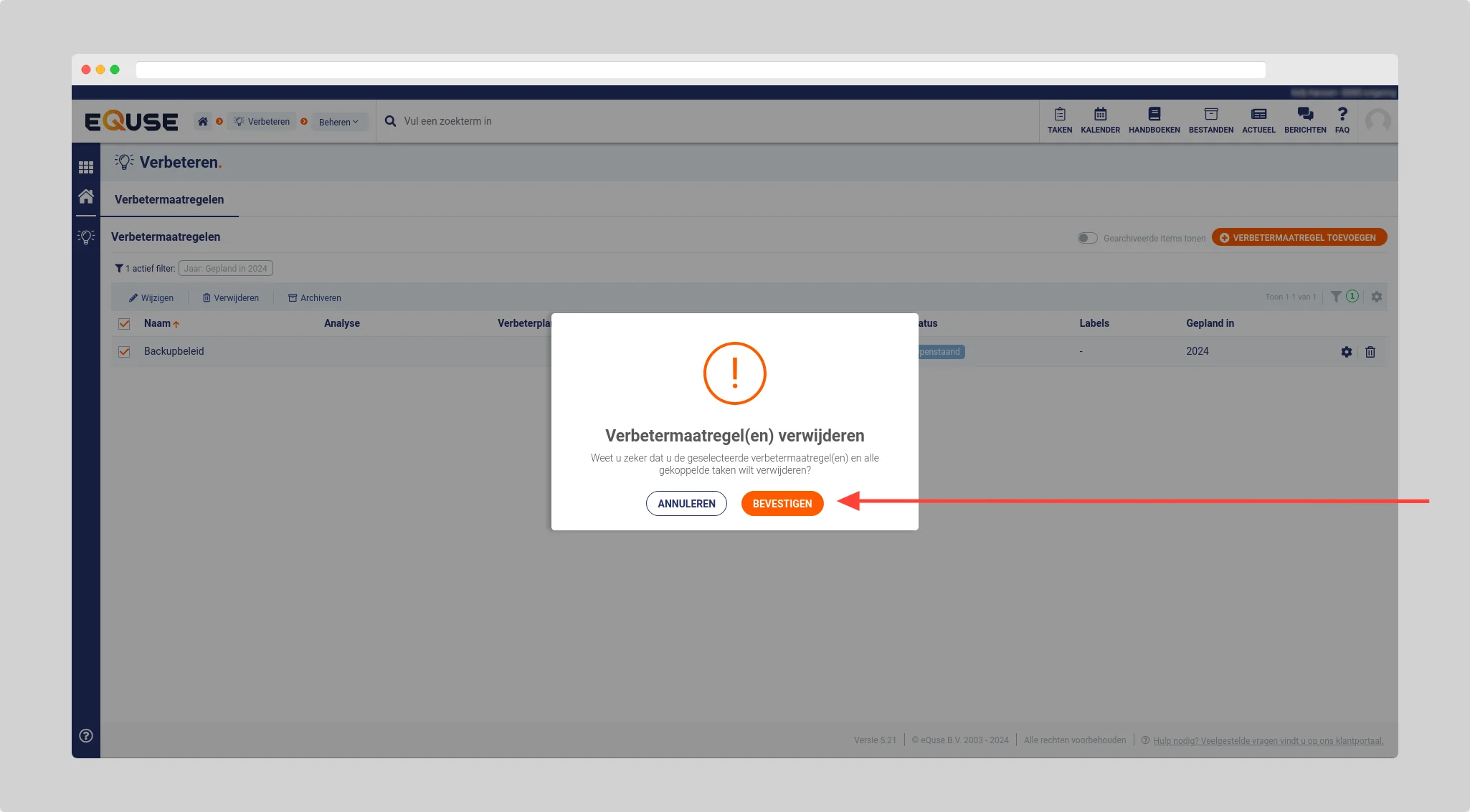 Volg onderstaande stappen om een verbetermaatregel te verwijderen.