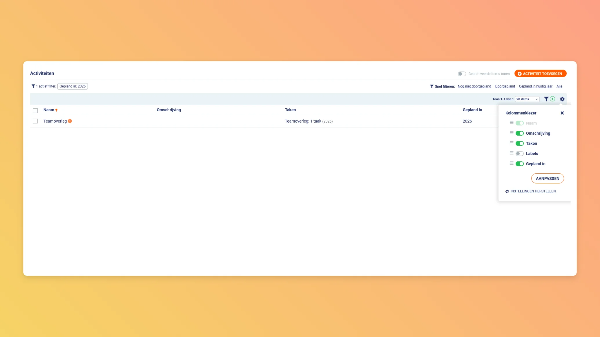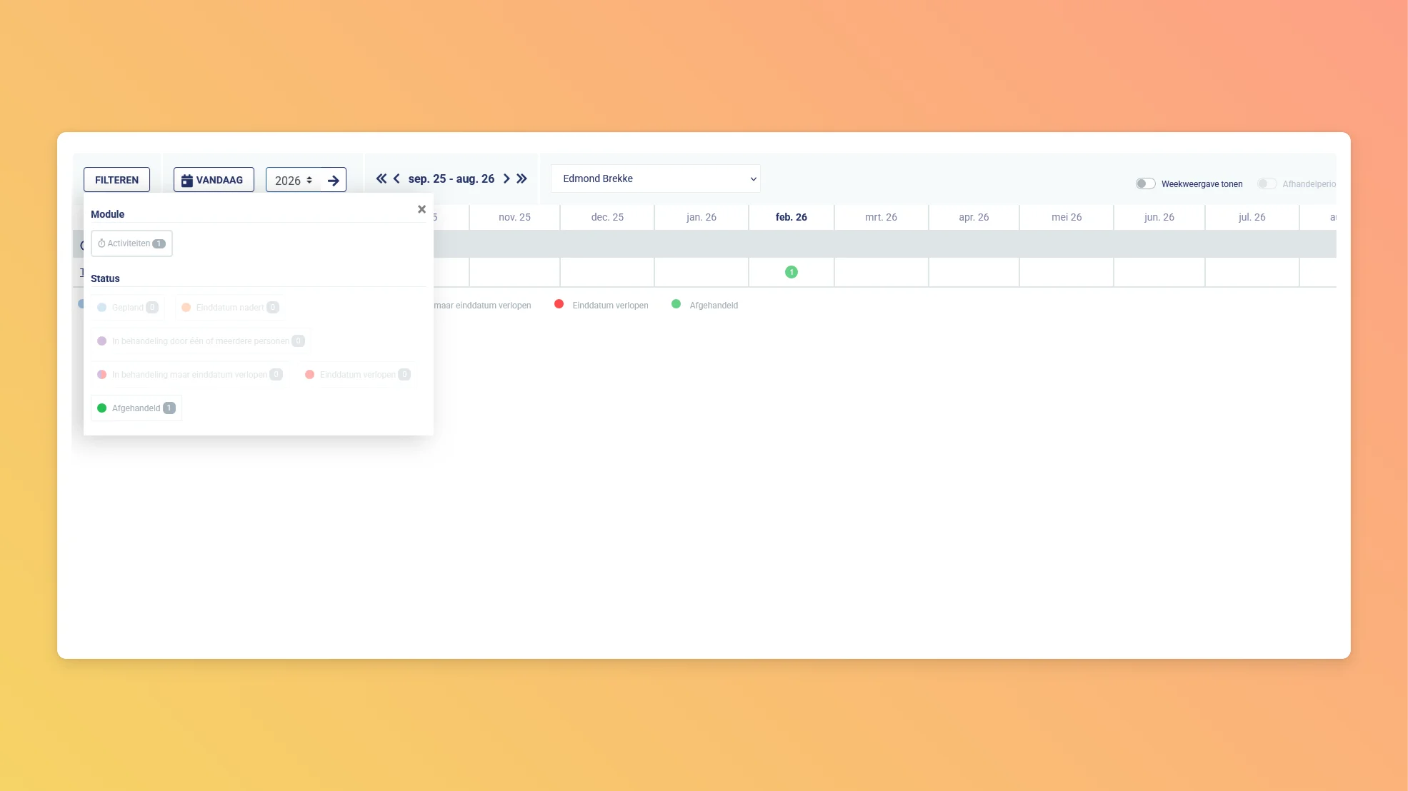 - Kalenderfilters blijven tijdens navigatie actief en zichtbaar, ook wanneer het ingestelde filter geen resultaten oplevert.
