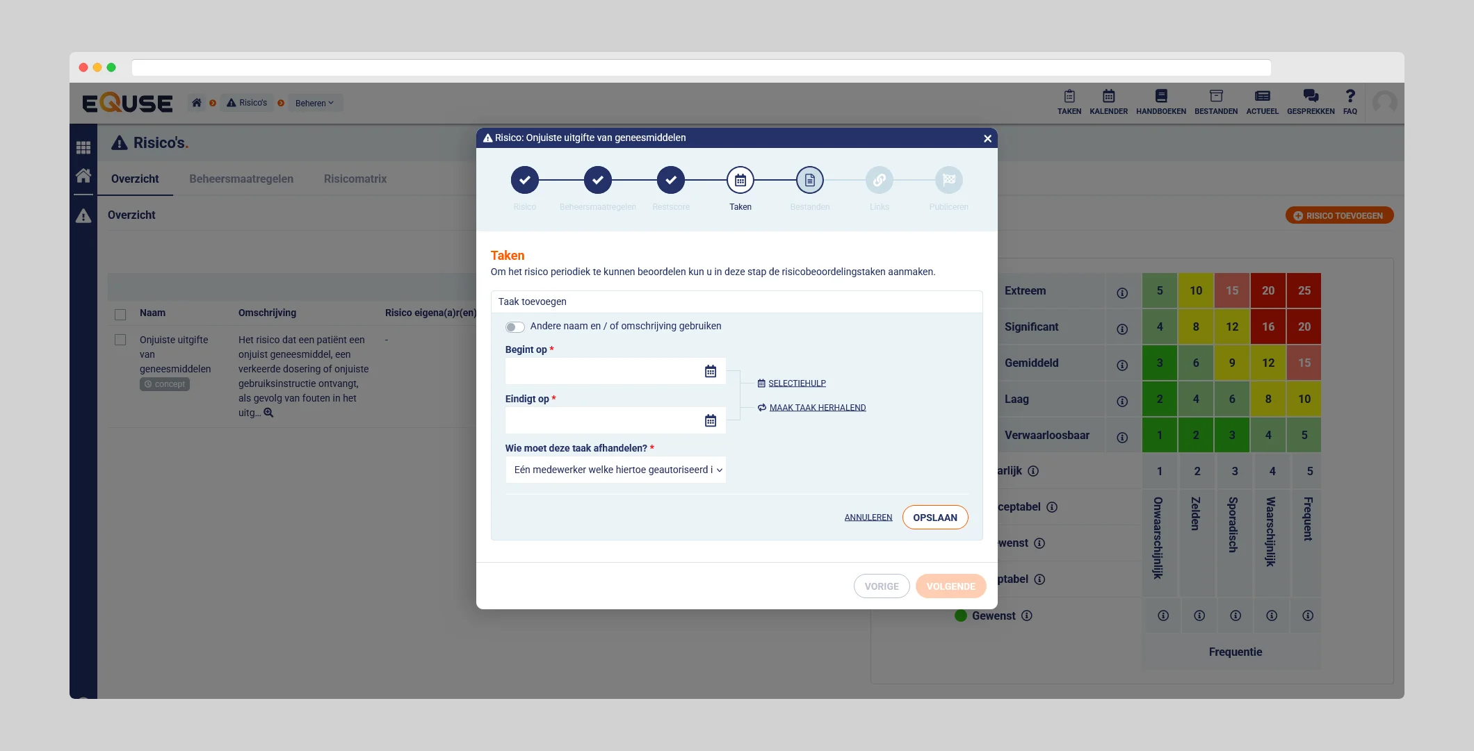 Risicobeoordelingstaak plannen in de Risico’s-module