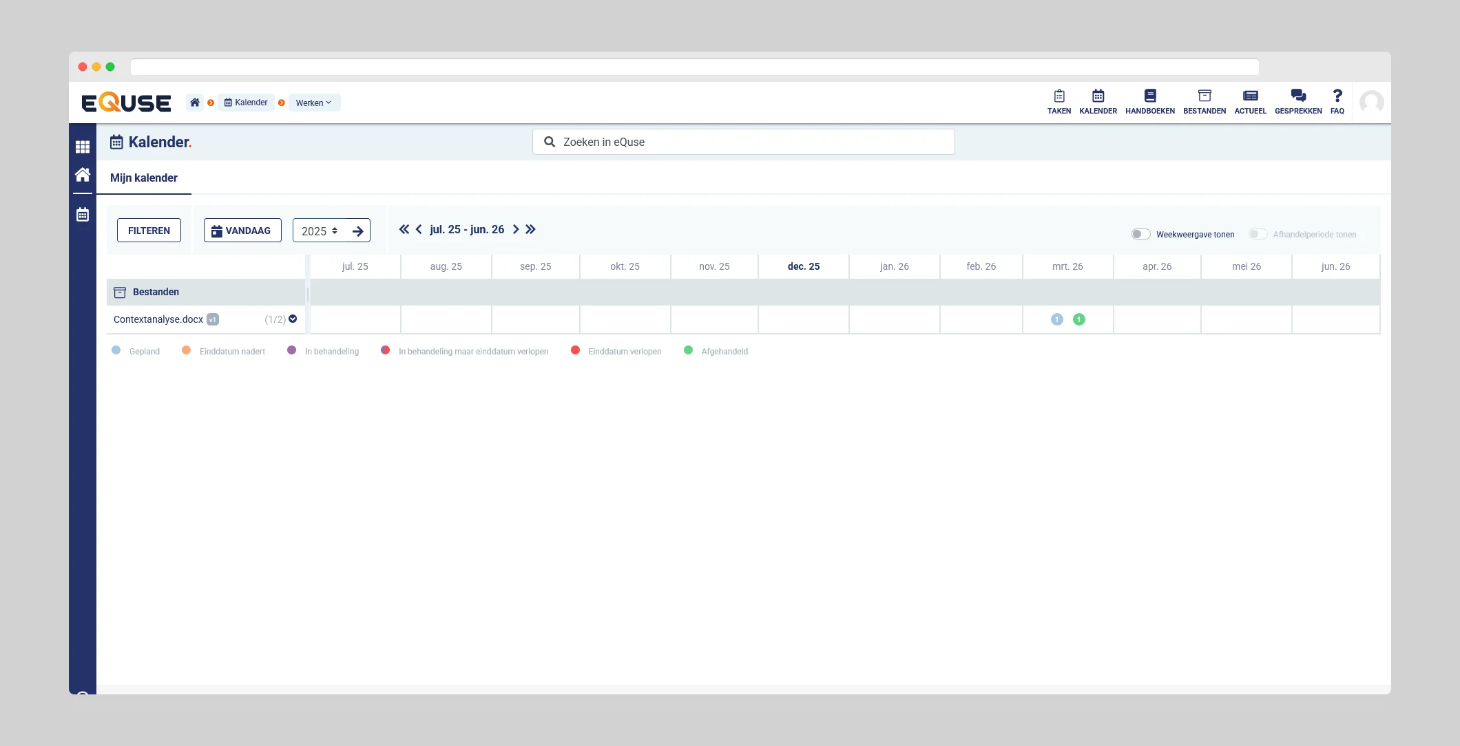 De taakafhandelingsschermen voor Bestanden en Handboek zijn verduidelijkt en beter op elkaar afgestemd, zodat u sneller begrijpt welke beslissing u neemt en op welk moment. U ziet duidelijker wat een revisiebeslissing inhoudt en wanneer een taak gepland staat, waardoor het risico op onbedoeld te vroeg afhandelen wordt verkleind. Daarnaast kunt u eenvoudiger de huidige versie van een bestand downloaden en is het mogelijk om bij handboekpaginarevisies, revisievoorstellen met elkaar vergelijken, ook wanneer meerdere collega’s aan een voorstel werken.