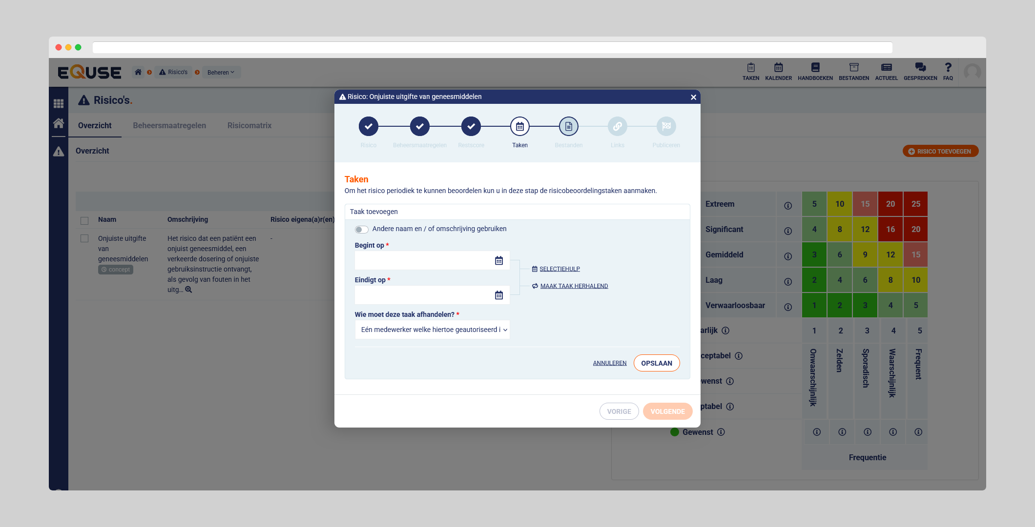 Risicobeoordelingstaak plannen in de Risico’s-module