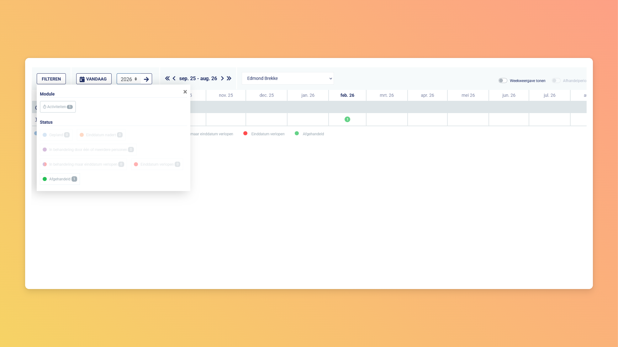 - Kalenderfilters blijven tijdens navigatie actief en zichtbaar, ook wanneer het ingestelde filter geen resultaten oplevert.