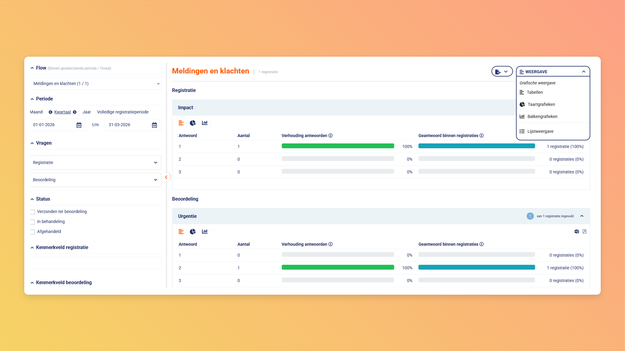 - De filteropties binnen de analyseomgeving van alle formuliermodules zijn uitgebreid met kenmerkvelden en aanvullende opties. Ook zijn de iconen voor de (geselecteerde) weergaveopties aangepast voor een heldere en consistente bediening.