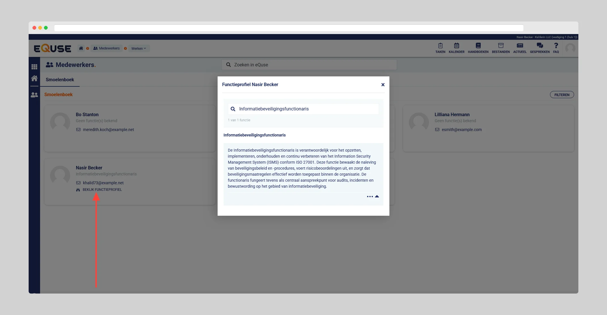 U kunt nu vanuit het smoelenboek in de module “Medewerkers” direct functieprofielen inzien via de link “Bekijk functieprofiel”. Zo ziet u direct welke rol en verantwoordelijkheden uw collega’s hebben. Bovendien kunt u binnen de toegewezen functies ook zoeken naar een specifieke functienaam, zodat u snel de gewenste informatie vindt. Dit helpt u om overzicht te houden en efficiënter samen te werken.