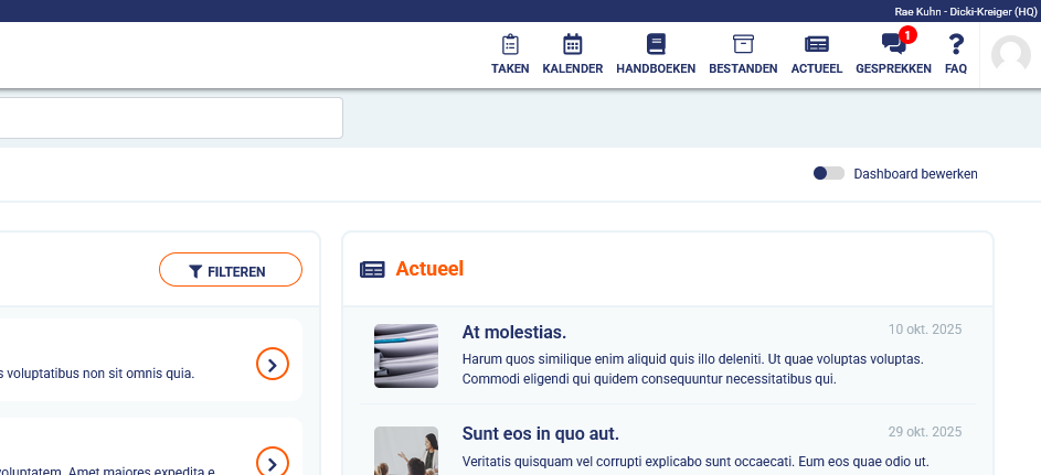 Op veler verzoek hebben we de module Berichten uitgebreid én hernoemd naar Gesprekken. Naast groepsgesprekken waarbij u zelf het onderwerp bepaalt, kunt u nu ook rechtstreeks een gesprek starten bij een taak. Zo blijft alle communicatie overzichtelijk bij de Taak beschikbaar, waardoor afspraken en besluiten eenvoudig herleidbaar en aantoonbaar zijn. U stemt bovendien moeiteloos af met collega’s, zonder extra taken aan te maken of via e-mail te communiceren.