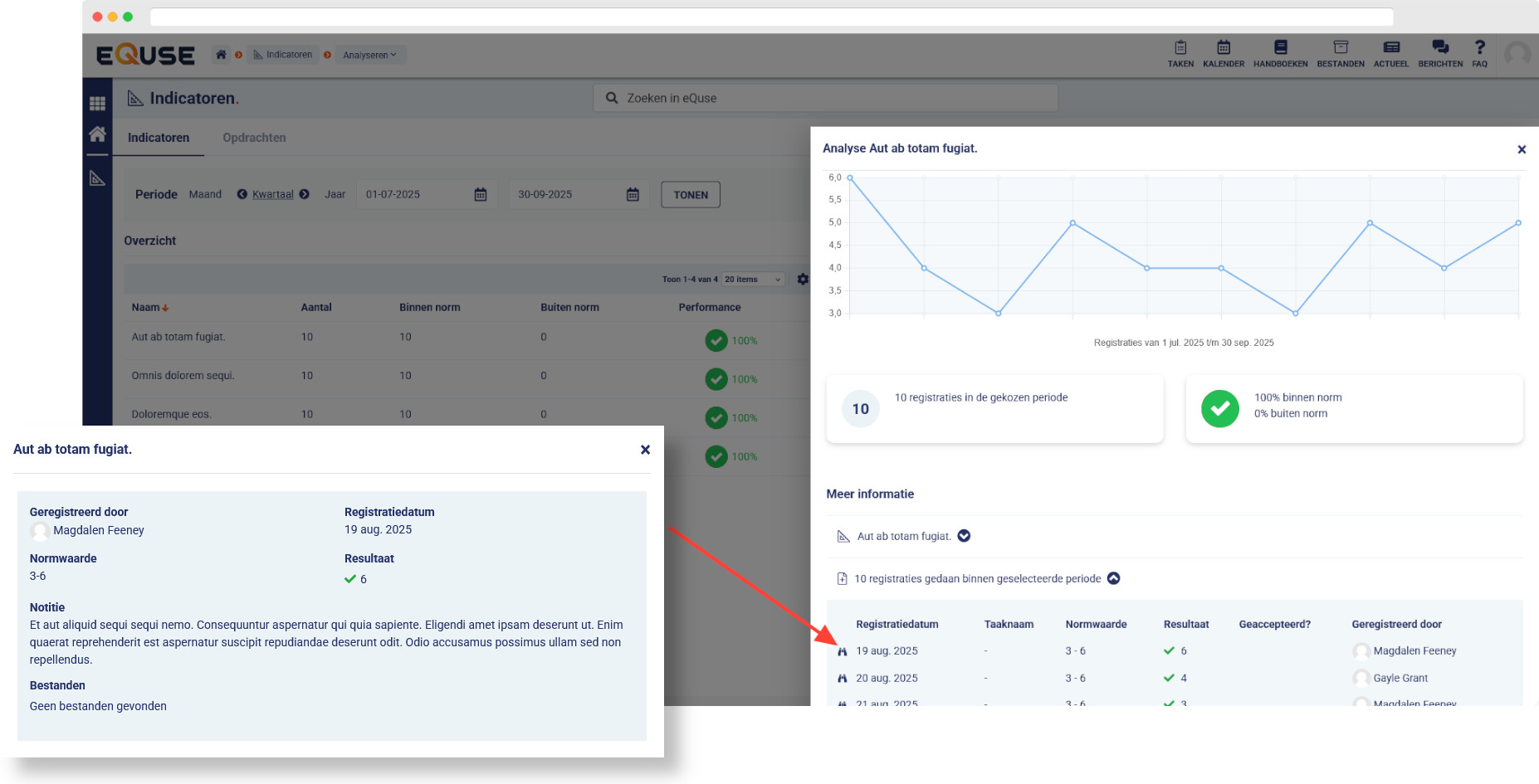 Maakt u gebruik van de module Indicatoren? Dan is er goed nieuws: u kunt nu bij elke indicator direct de volledige registratie openen. Dit maakt het mogelijk om snel de context en toelichting bij afwijkende resultaten te bekijken, inclusief notities en gekoppelde bestanden. Zo hoeft u niet langer te zoeken naar aanvullende informatie en kunt u beter onderbouwde beslissingen nemen. Deze aanpassing zorgt voor meer overzicht en efficiëntie in uw analyseproces.