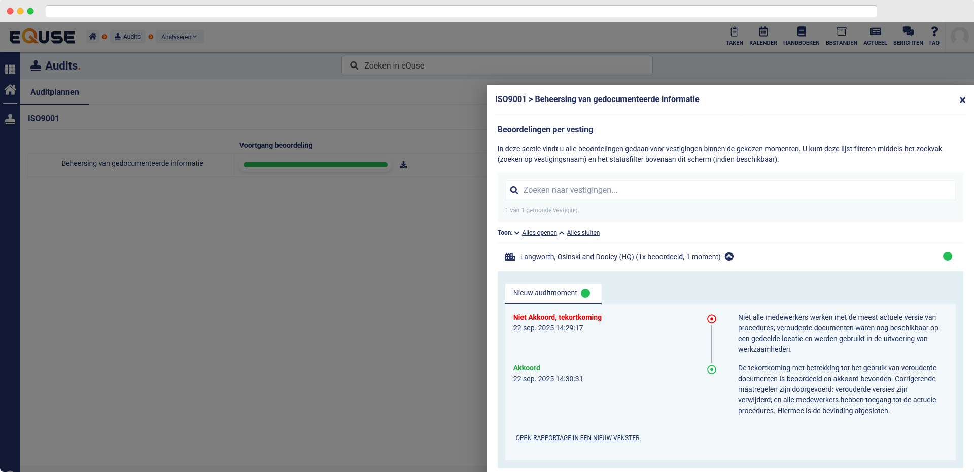 Bij het uitvoeren van analyses in de module “Audits” ziet u nu ook de bijbehorende opmerkingen in het overzicht. Dit geeft u meer inzicht in de achterliggende oorzaken en maakt het eenvoudiger om verbanden te leggen tussen verschillende audits. Zo kunt u sneller patronen herkennen en gerichte verbetermaatregelen nemen.