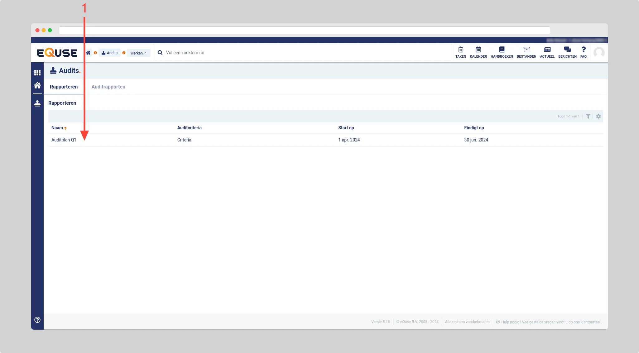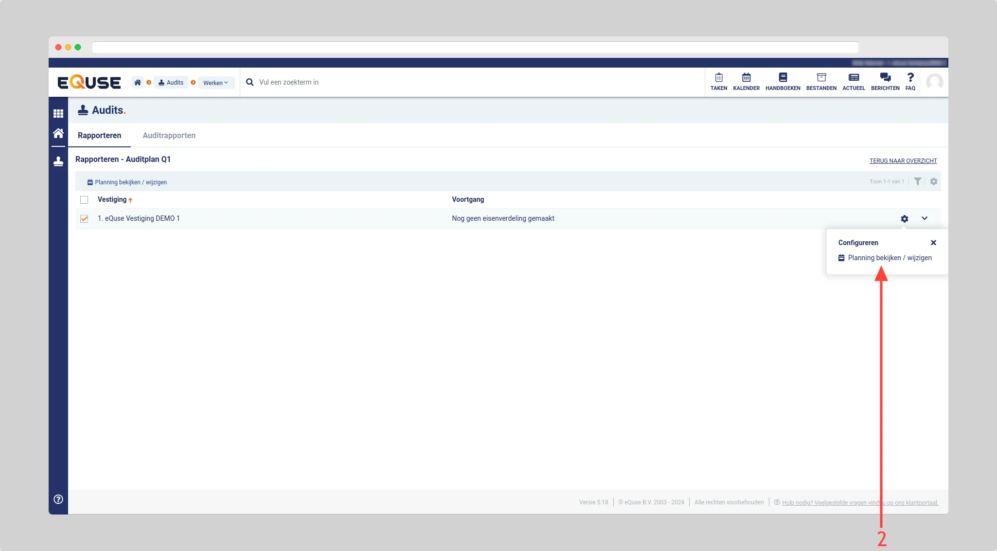 Klik het auditplan aan waarvoor u de eisen wilt verdelen (1).